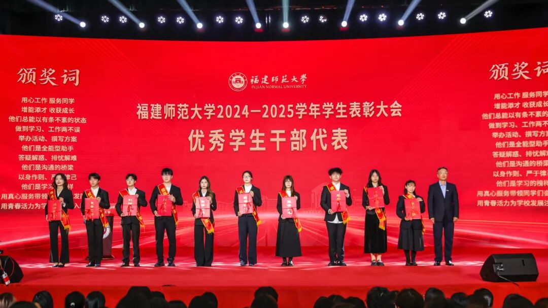 点击视频 带你回顾福建师范大学2024-2025学年学生表彰大会大会于12月24日在旗山校区图书馆大会堂隆重举行。校领导郑家建、吴剑锋、陈晓斌,校关工委副主任郭警修,相关职能部门负责人,学院分管学生工作负责人,全体辅导员和受表彰的先进集体、先进个人代表参加了大会。