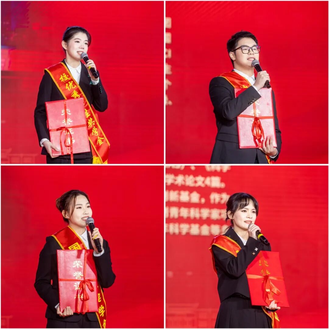 会上,校党委副书记吴剑锋宣读了表彰名单,出席会议的领导为受表彰学生代表颁发荣誉证书,4位学生代表依次发表获奖感言。