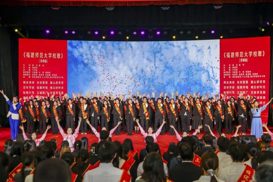 先进集体与先进个人代表共同朗诵了原创诗歌《青春的模样》,与会师生合唱了《福建师范大学校歌》。