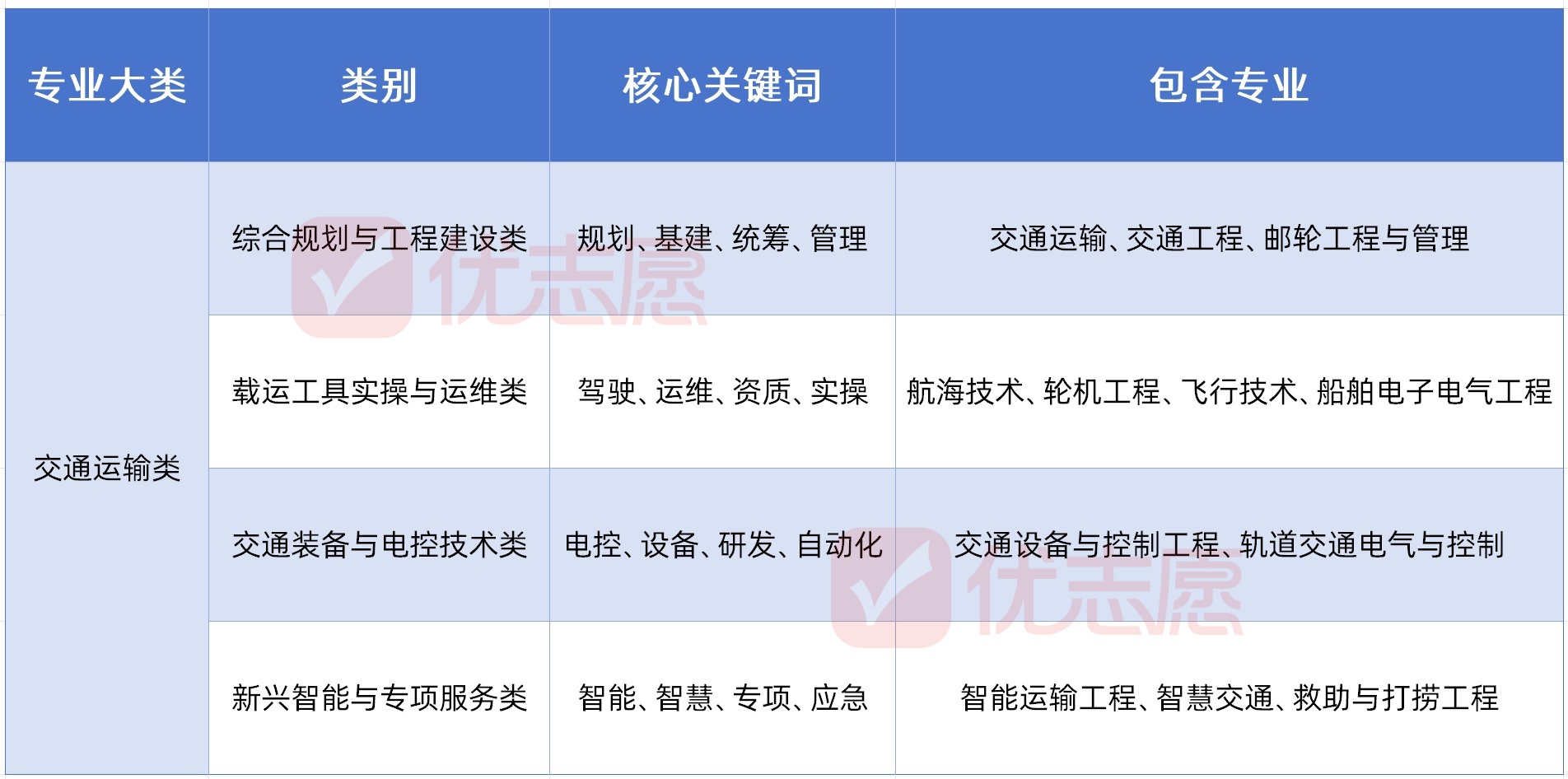 这类专业的核心定位是交通全领域的顶层规划、基础设施建设与行业统筹管理,作为交通运输类的基础核心方向,覆盖陆、水、空全维度交通基建与系统规划,工科属性突出,就业面广泛且无特殊身体限制。