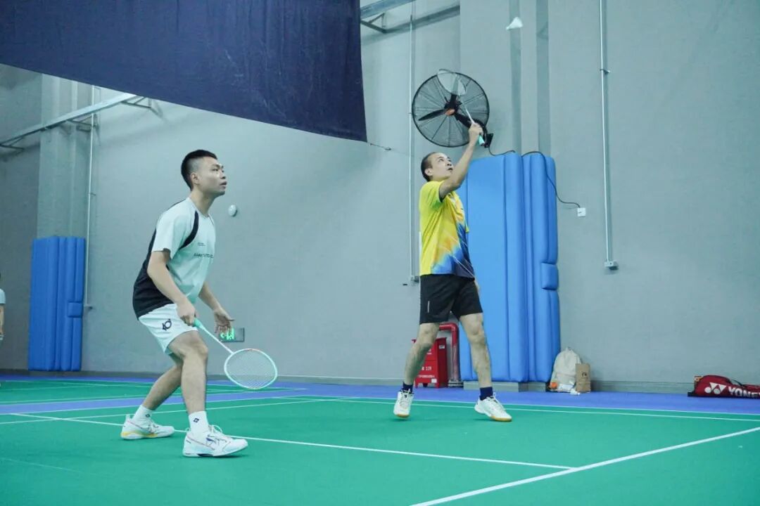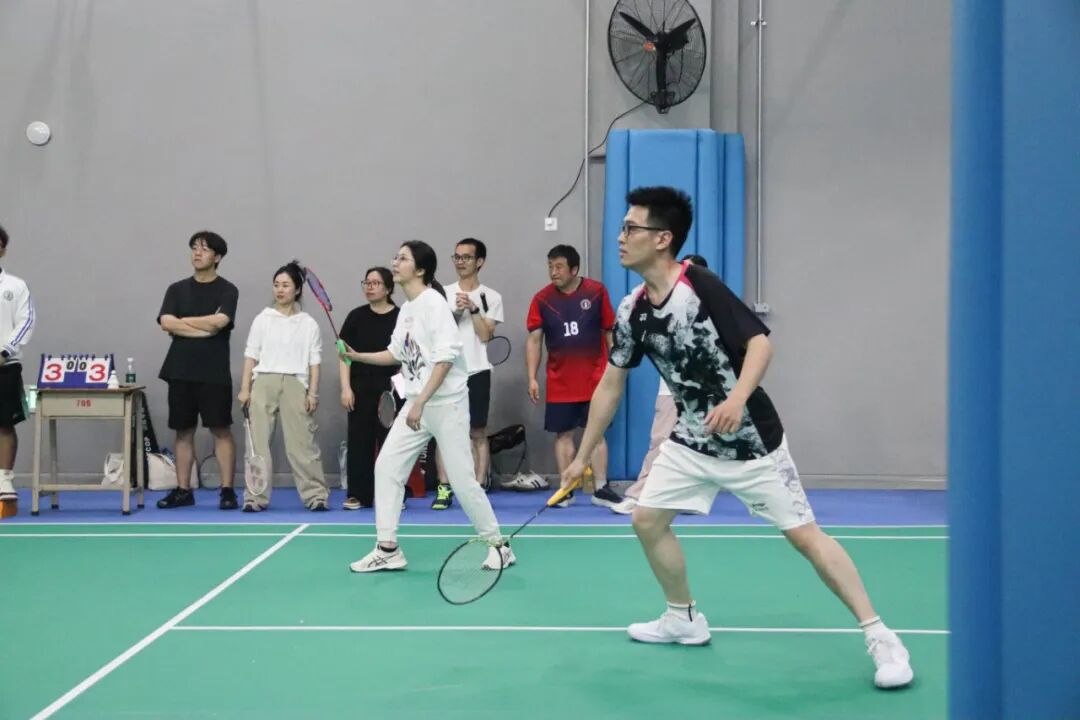 活力,在每片场地上奔涌!看,混双赛场默契配合,攻防转换间尽显智慧;女双对决灵动敏捷,网前小球细腻精准;男双比拼力量与速度,凌厉扣杀气势如虹!第一阶段小组循环赛战况激烈,各队排兵布阵,巧妙谋划;运动员们挥汗如雨,每球必争。场上是全力以赴的对手,场下是相互鼓劲的同事,“好球!”“加油!”的呐喊声不绝于耳,完美诠释了“友谊第一,比赛第二”的体育精神。