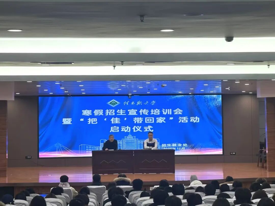为进一步拓展生源渠道,提升学校社会影响力,充分发挥在校学子与母校的情感纽带作用,12月18日招生就业处在东极讲堂成功举办2026年“把‘佳’带回家”寒假招生宣传活动启动仪式。