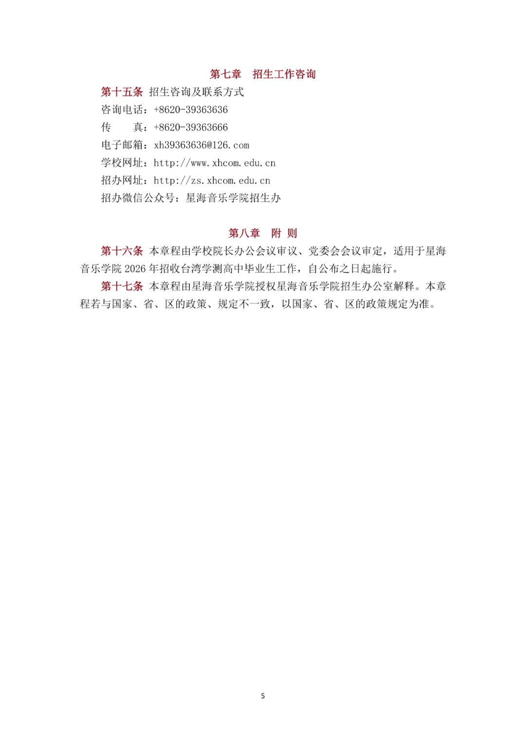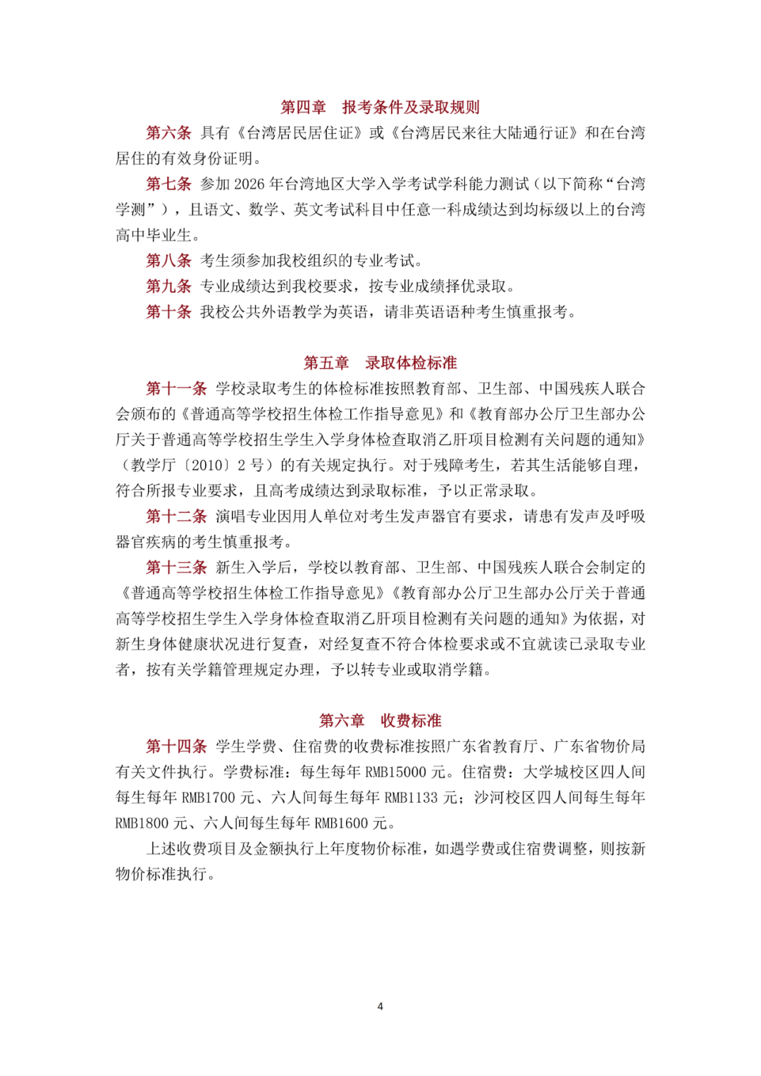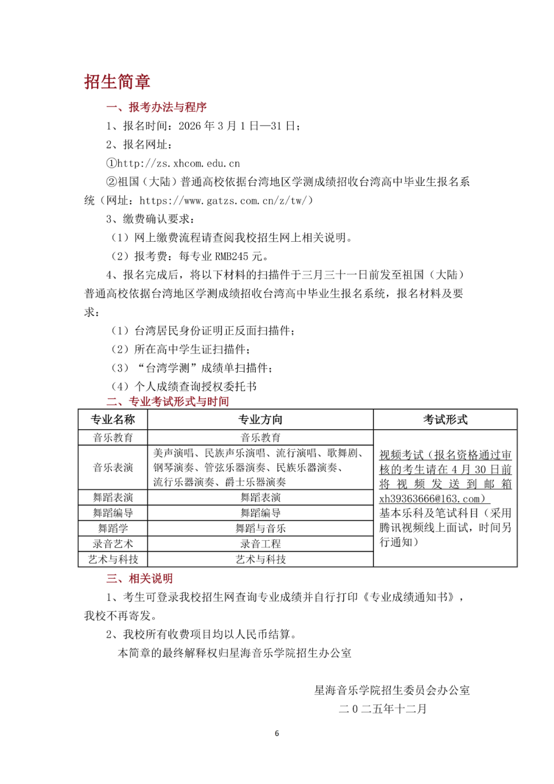 星海音乐学院2026年依据台湾地区大学入学考试学科能力测试成绩招收台湾高中毕业生招生简章