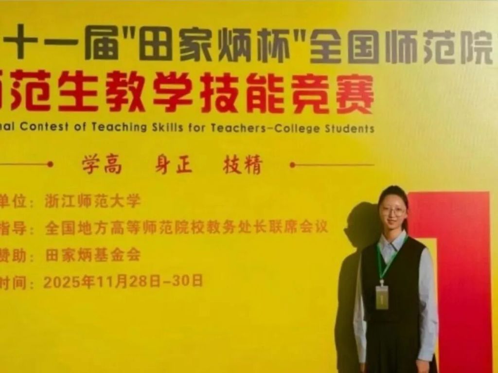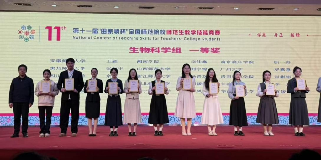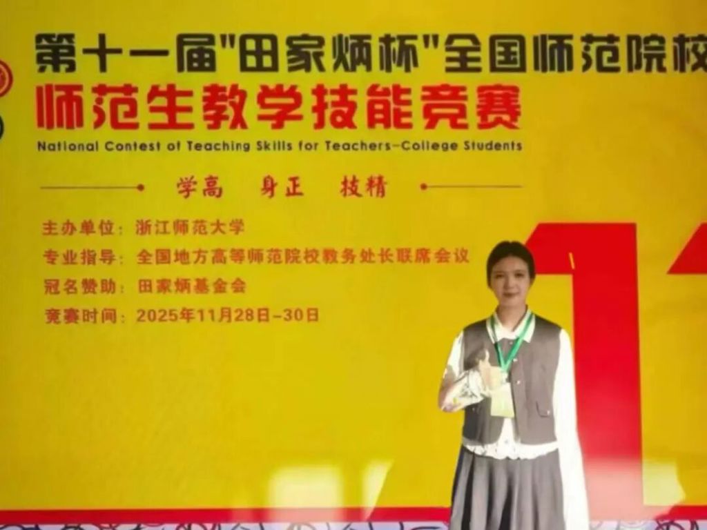 (新闻网讯 学生创新与实践中心报道)近日,第十一届“田家炳杯”全国师范院校师范生教学技能竞赛总决赛在浙江师范大学圆满落幕。我校入围总决赛的4名学子不负众望、斩获佳绩:生物科学组杨震获一等奖(全国排名第4),思想政治教育组魏茉仝、化学组任禹默、语文组冉亚可均获二等奖。