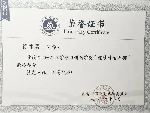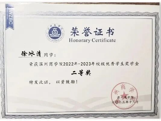 大学阶段,徐冰清始终将学业作为发展的根基。