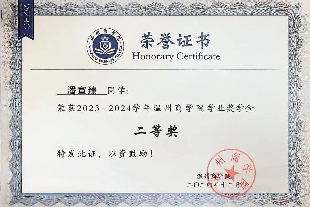 赛场之上,他是敢拼敢闯的“跳绳王者”;课堂之中,他是深耕不辍的“学霸先锋”。潘宣臻深知专业知识是成长的基石,课上专注听讲、紧跟老师思路,课后勤于钻研、梳理知识框架。这份踏实与坚持,让他的绩点始终稳居专业前列、班级第一,还先后斩获校三好学生、优秀学生二等奖学金等荣誉,用实力诠释了“全面发展”的真谛。