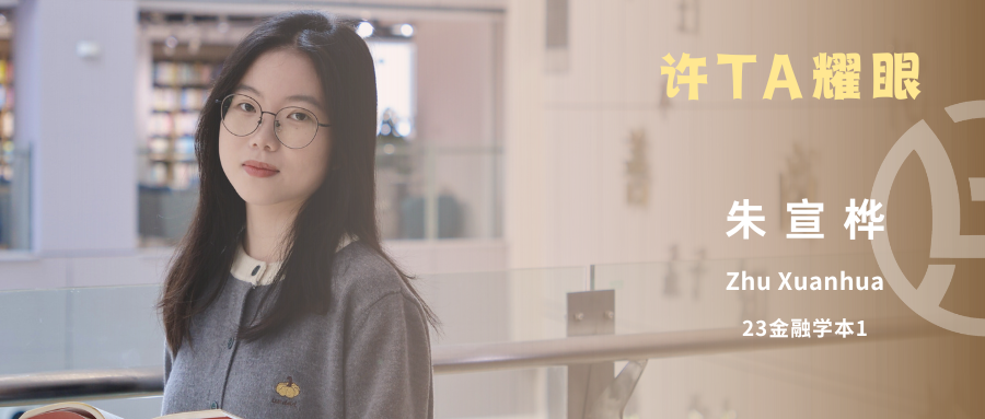 朱宣桦,2023级金融学专业学生,高中毕业于浙江省嵊泗中学。中共预备党员,现任学生党建·创先争优发展岗负责人、班级团支书。大一、大二平均绩点稳居年级前1%,获浙江省金融创新大赛金奖等奖项,获评院优秀共青团干部与三好学生,志愿时长超 200 小时,综合素养突出。