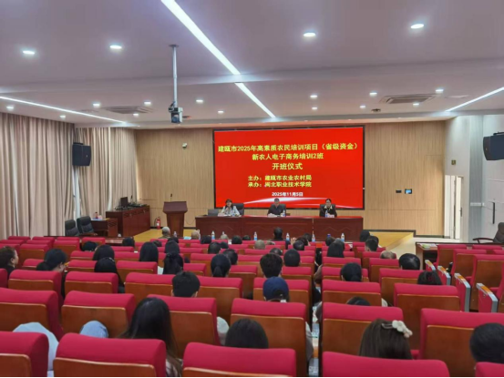 为顺应数字经济发展趋势,落实农村电商高质量发展政策要求,培育乡村振兴电商人才主力军,11月5日,建瓯市2025年高素质农民培训项目(省级资金)“新农人”电子商务培训2班在闽北职业技术学院正式开班。学院信息系主任张金良、建瓯市农业农村局科教站副站长谢琳出席开班仪式并讲话,招生就业与对外合作处负责人詹永珍主持仪式。