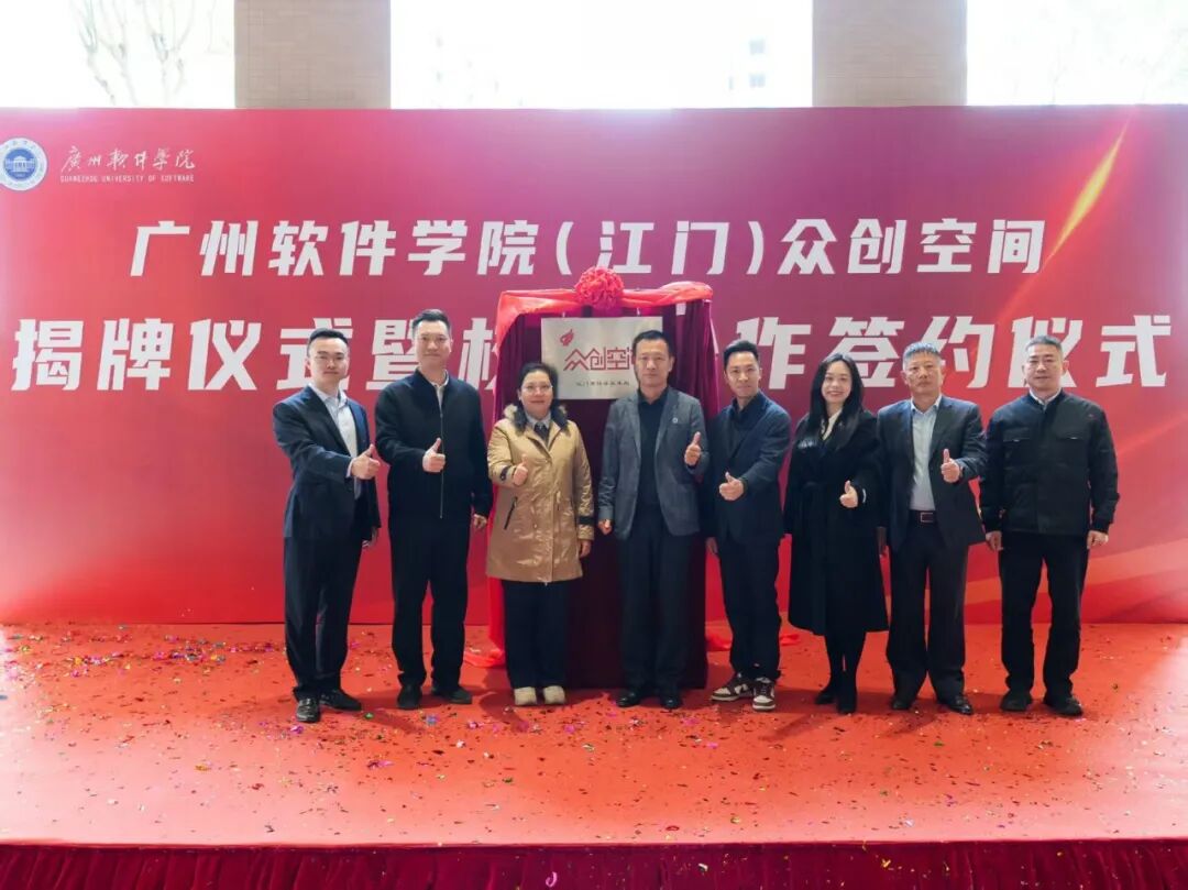 与会领导嘉宾共同为“广州软件学院江门校区众创空间”