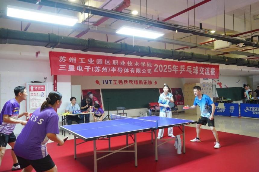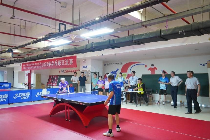 毕业典礼结束后,全体嘉宾与师生合影留念。紧接着,一场校企乒乓球友谊赛开始,推挡扣杀间,银球划出的抛物线把“更快、更高、更强”的体育精神写进校企合作的续章。