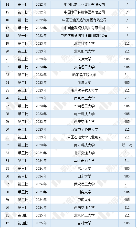 42家国家卓越工程师建设高校全部为双一流层次高校,其中985高校24所、211高校17所、双一流高校1所。