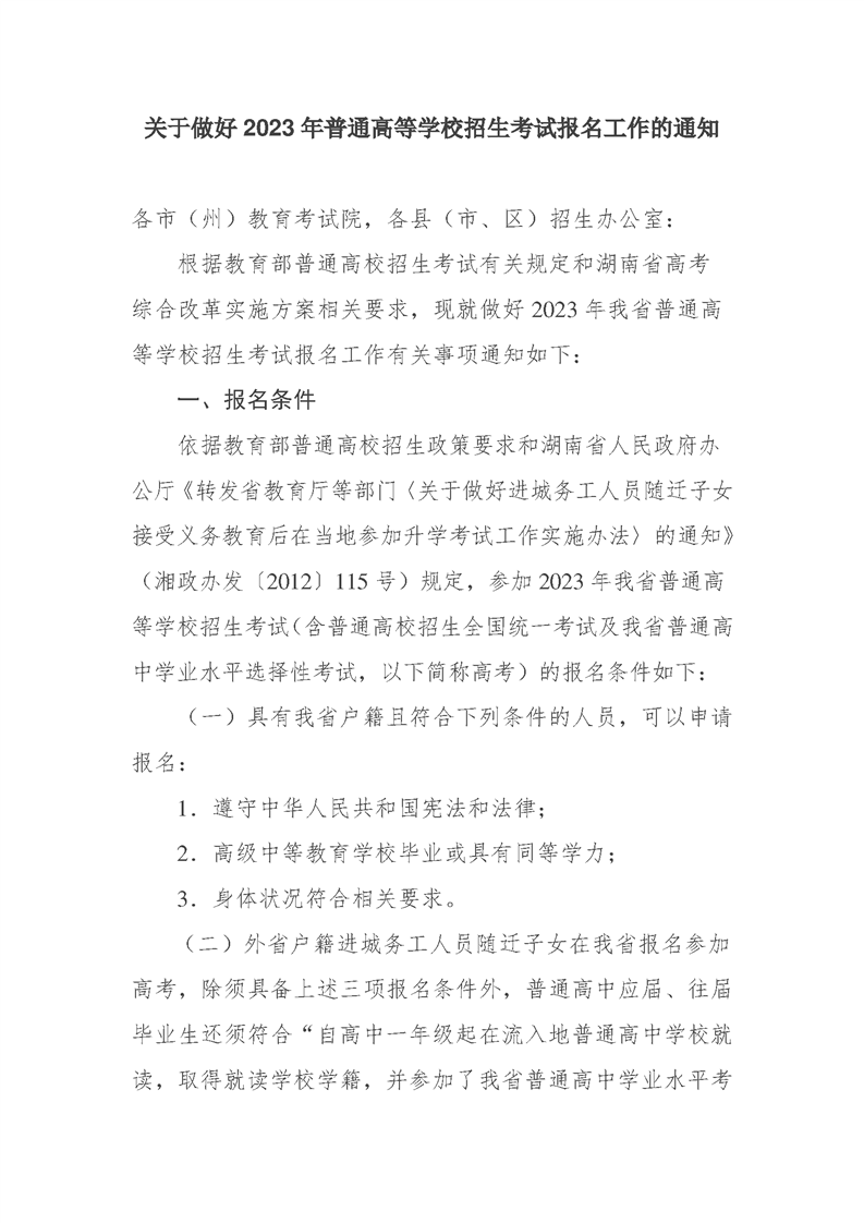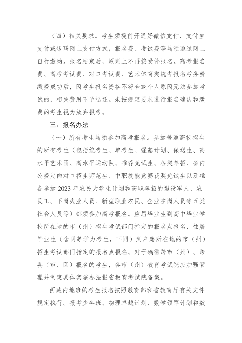 关于做好2023年普通高等学校招生考试报名工作的通知