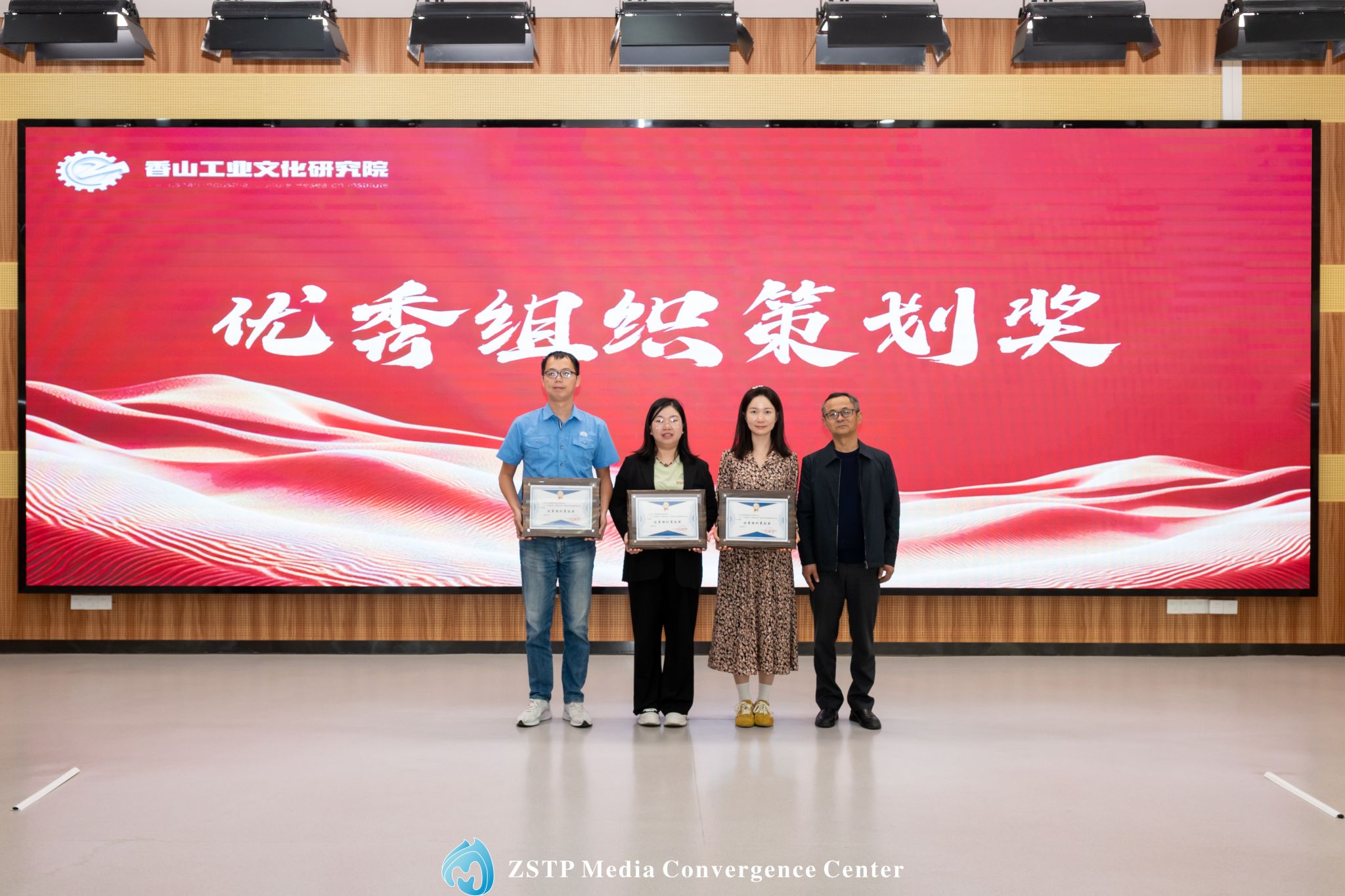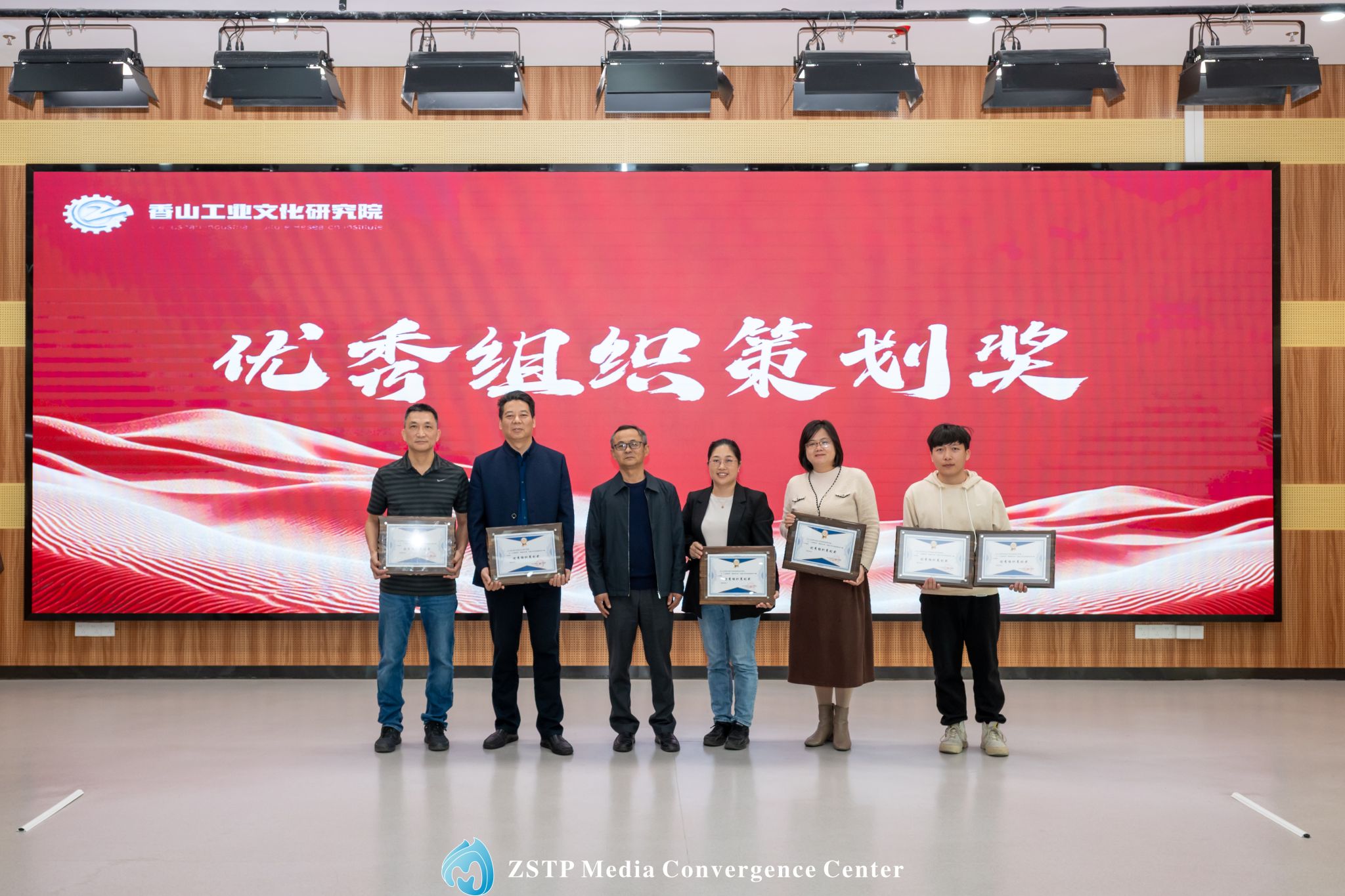 【中山火炬职业技术学院党委委员、中山市香山工业文化研究院理事长李衡为“优秀组织策划奖”获奖单位颁奖】