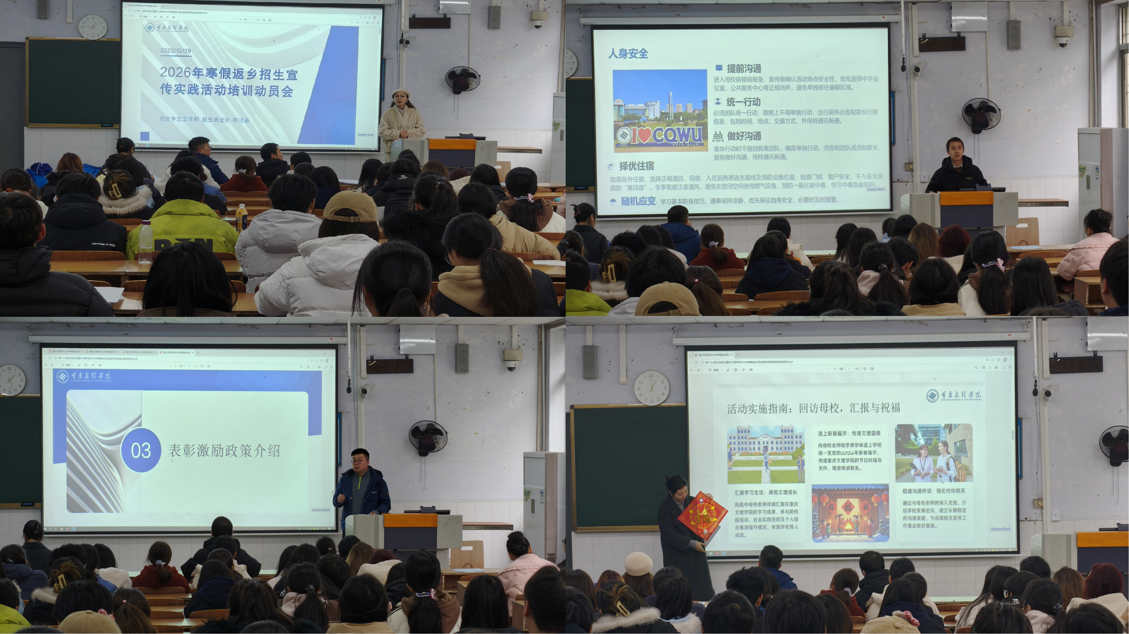 “返乡传薪火,逐梦引新程”2026年寒假返乡招生宣传实践活动是由招生就业处、党委学生工作部、校团委共同组织的育人活动。据悉,自活动启动筹备以来,得到全校学生积极响应,共组建220余支队伍,超过500名学生参与,参与人数与去年相比增长近100%,活动规模创新高。