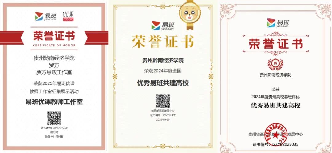 2025年,我校网络思政育人阵地建设取得显著成效。“罗方思政工作室”成功入选全国易班优课教师工作室,罗方获评“人气教师”荣誉称号,实现了个体工作室建设的国家级突破。易班发展中心荣获全国“优秀易班共建高校”及省级“优秀易班共建高校”双项荣誉,使我校成为贵州省唯一获此双重肯定的民办高校,标志着我校网络思政建设水平迈入全国及全省先进行列,我校入选“2025年全国易班优课优秀十佳案例”“易班优课“行走的思政课”优秀组织奖,教师25人次获评“优秀教师”“人气教师”等荣誉,86名学生获得“优秀学生骨干”表彰,网络思政工作品牌效应显著增强。