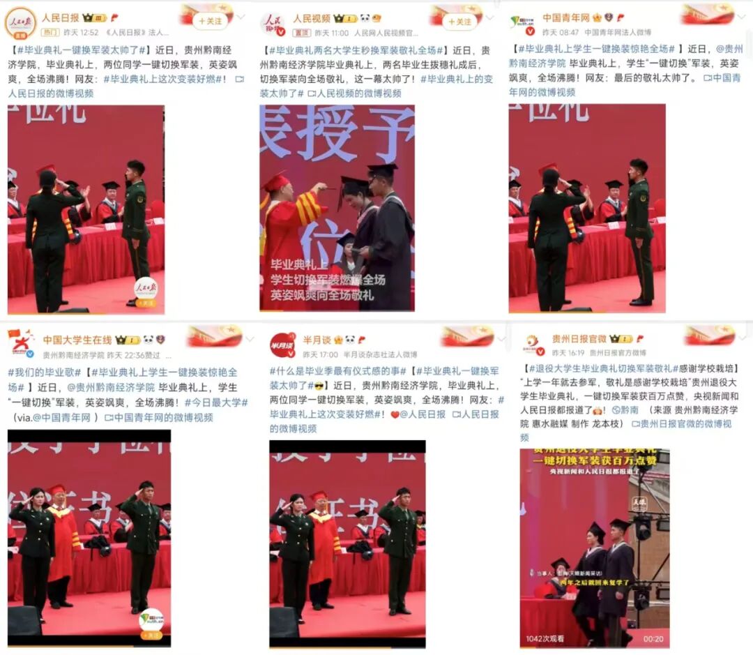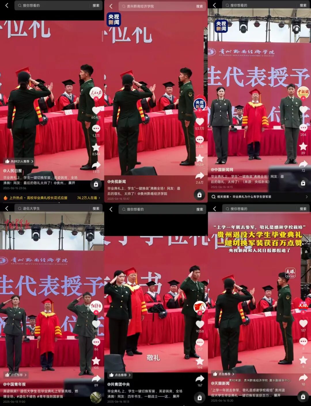 2025年,我校毕业季系列活动火爆出圈,其中“毕业典礼一键换军装敬礼”等相关视频被新华社、央视新闻、《人民日报》、人民视频等国家级媒体集中报道,累计播放量超1亿次,引发全国范围现象级传播。
