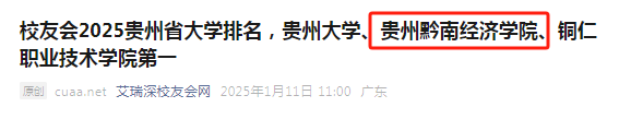 2025年我校在“校友会”排名中雄居贵州省民办高校第一位,全国民办高校Ⅲ类(经济类)排第26位;品牌影响力日趋上升,社会认同度高。