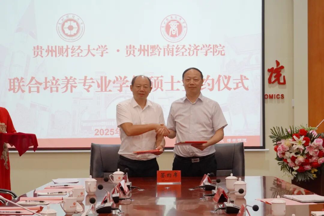 贵州财经大学与我校签订了联合培养专业学位硕士协议,我校12名优秀教师被遴选为贵州财经大学硕士研究生导师,今年正式开启联合培养硕士研究生的新征程。