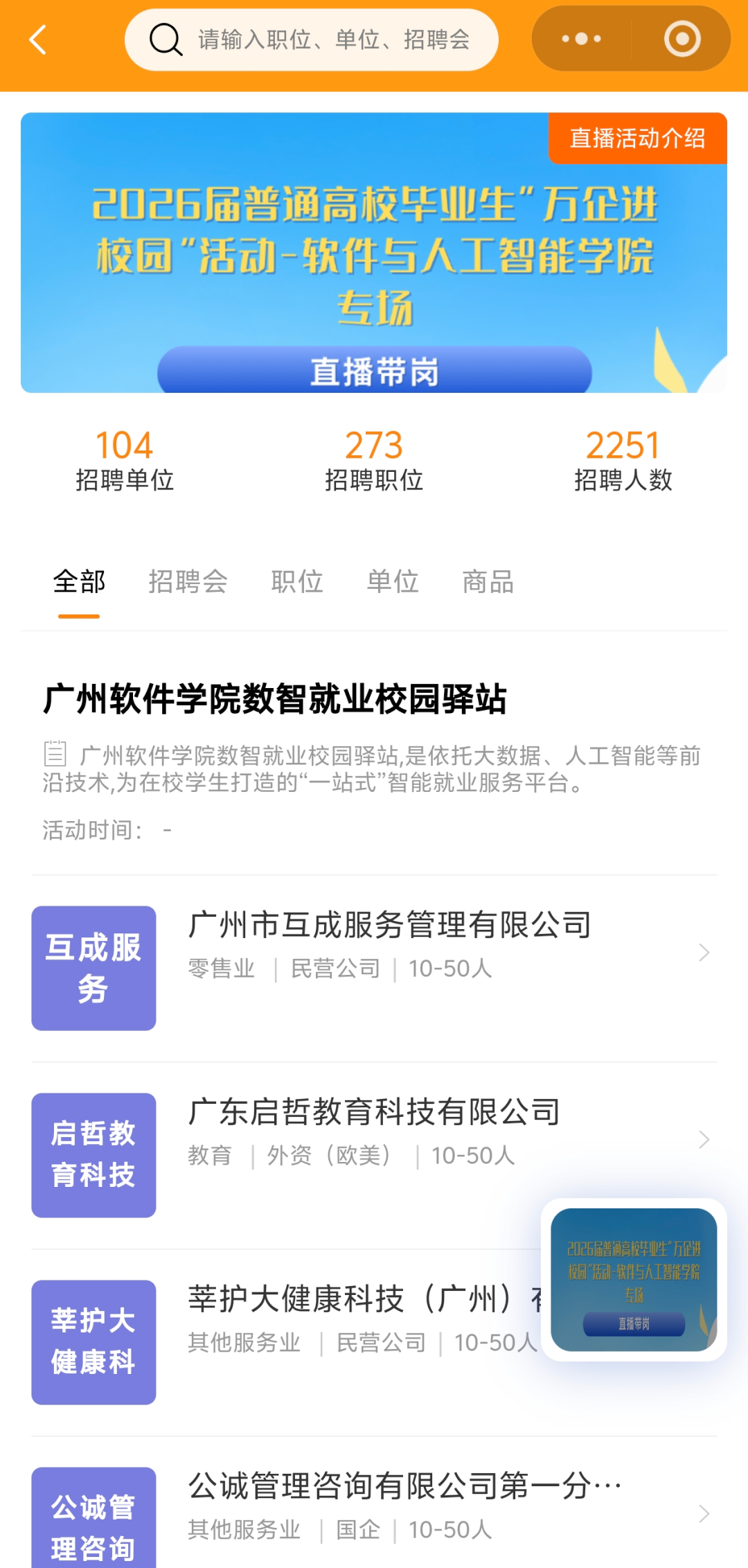 小而精、专而优、行业专场招聘会19场