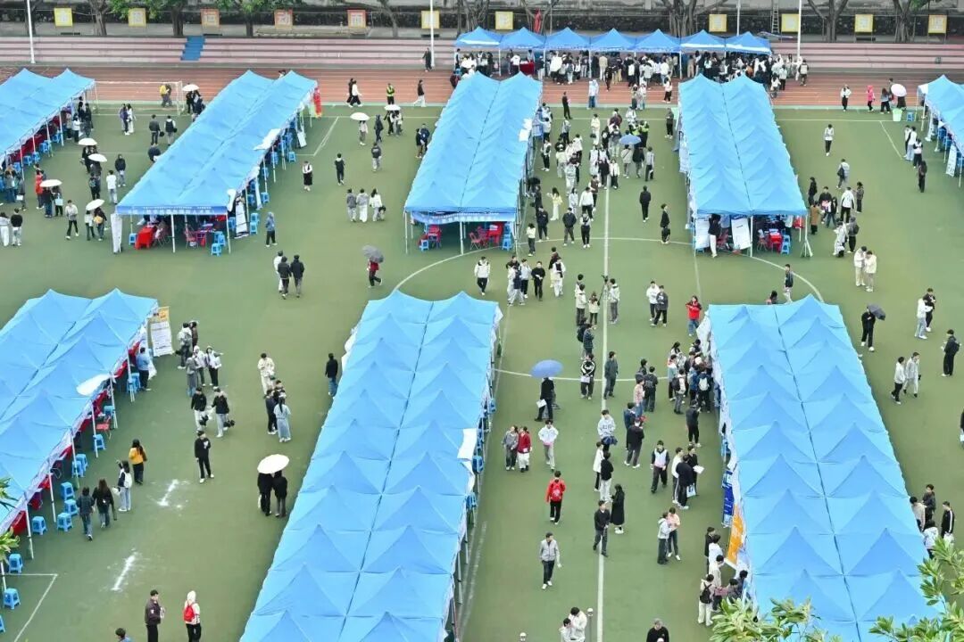 11月18日,举办“广东省2026届普通高校毕业生系列供需对接活动—从化地区专场”招聘会,现场有近320家企业参加,提供11000个岗位,各地政府人才部门、行业协会、校友企业“组团式”招聘,校内校外近5000多毕业生参加招聘会。
