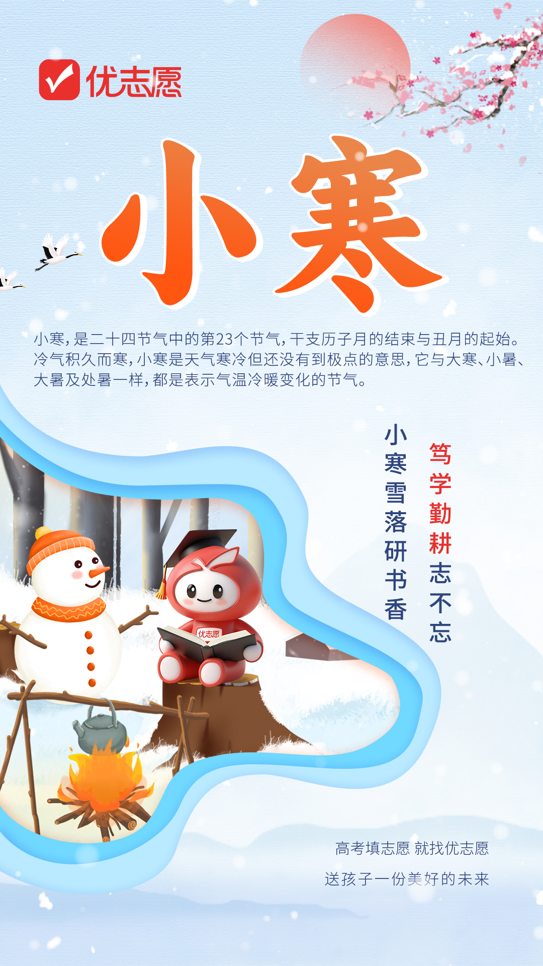 雪落小寒,书声是火;笃学勤耕,优志愿作灯——照你去更高的岸。