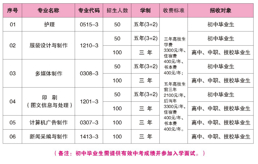 3.面试要求:学生本人携带身份证、户口本、初中毕业证原件及复印件和中考成绩单(或学业水平测试成绩单)来校面试。