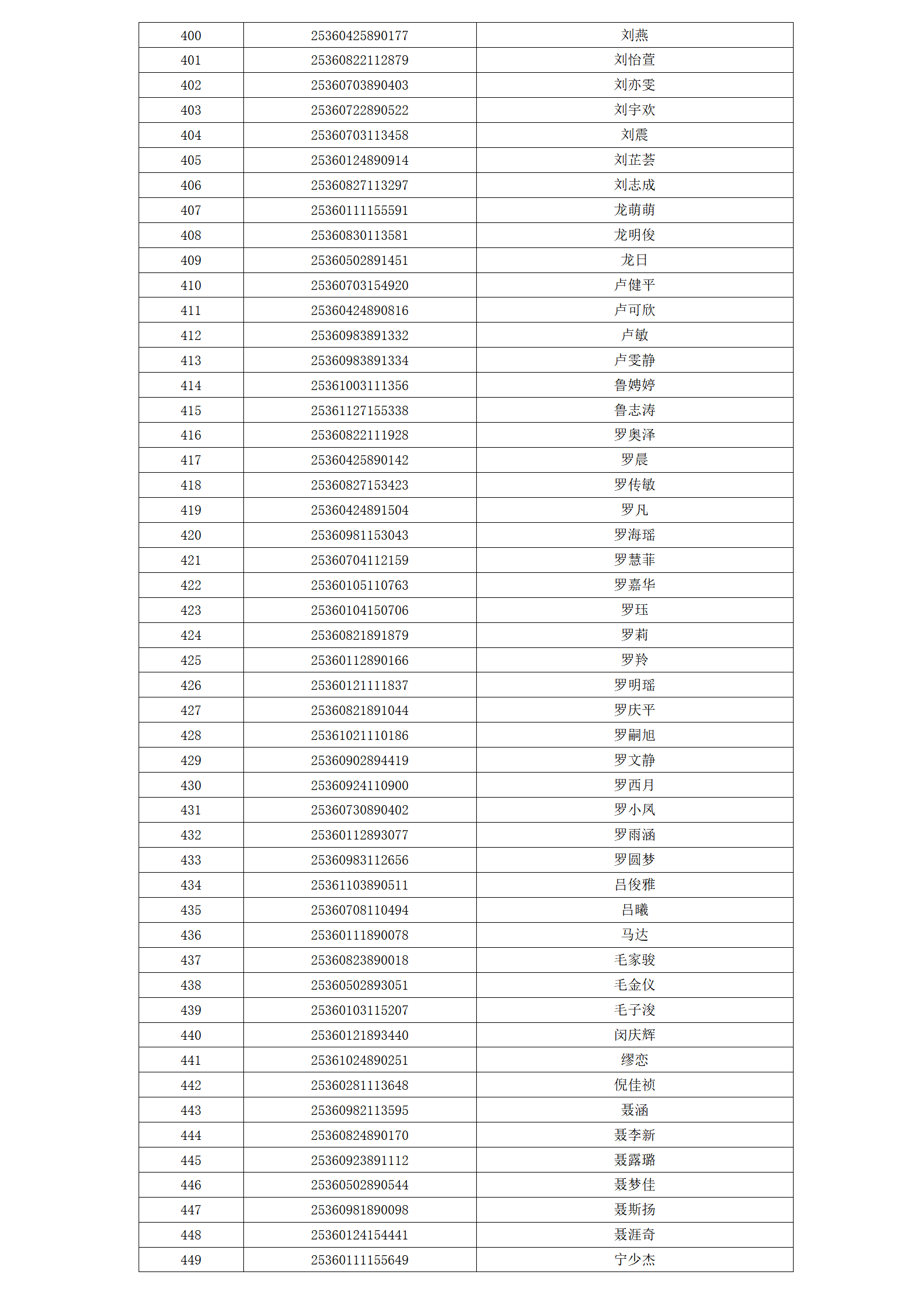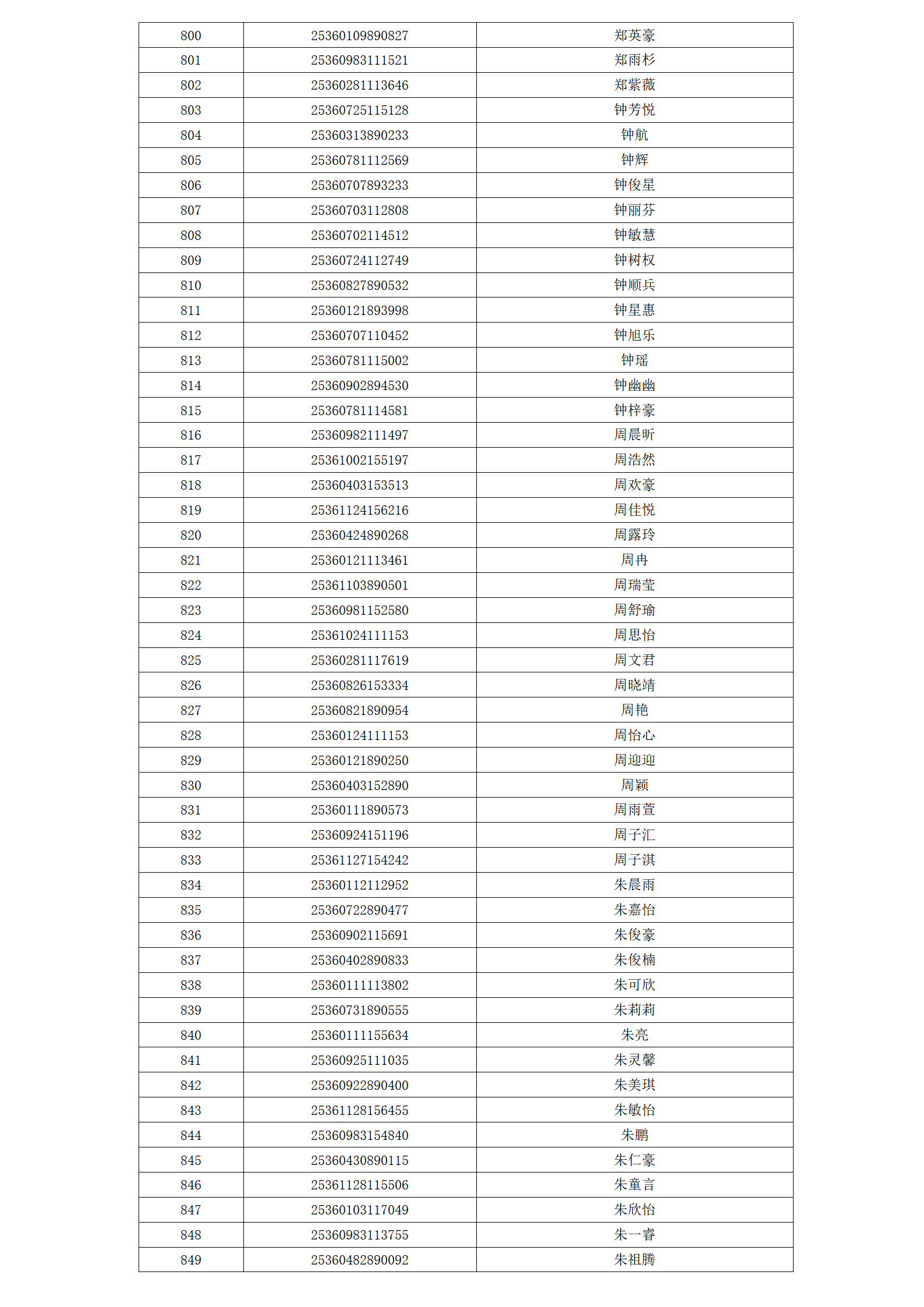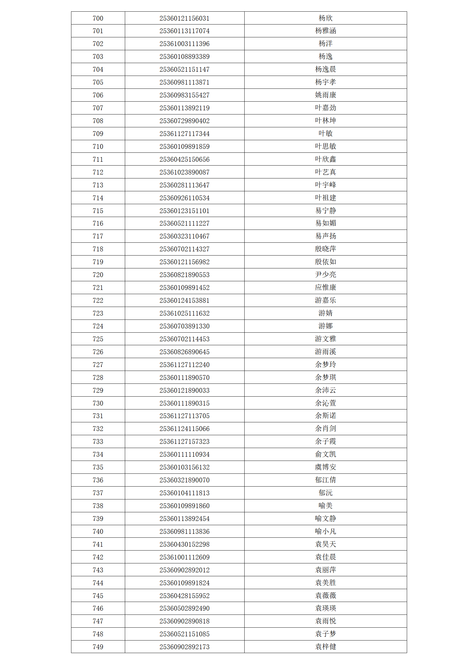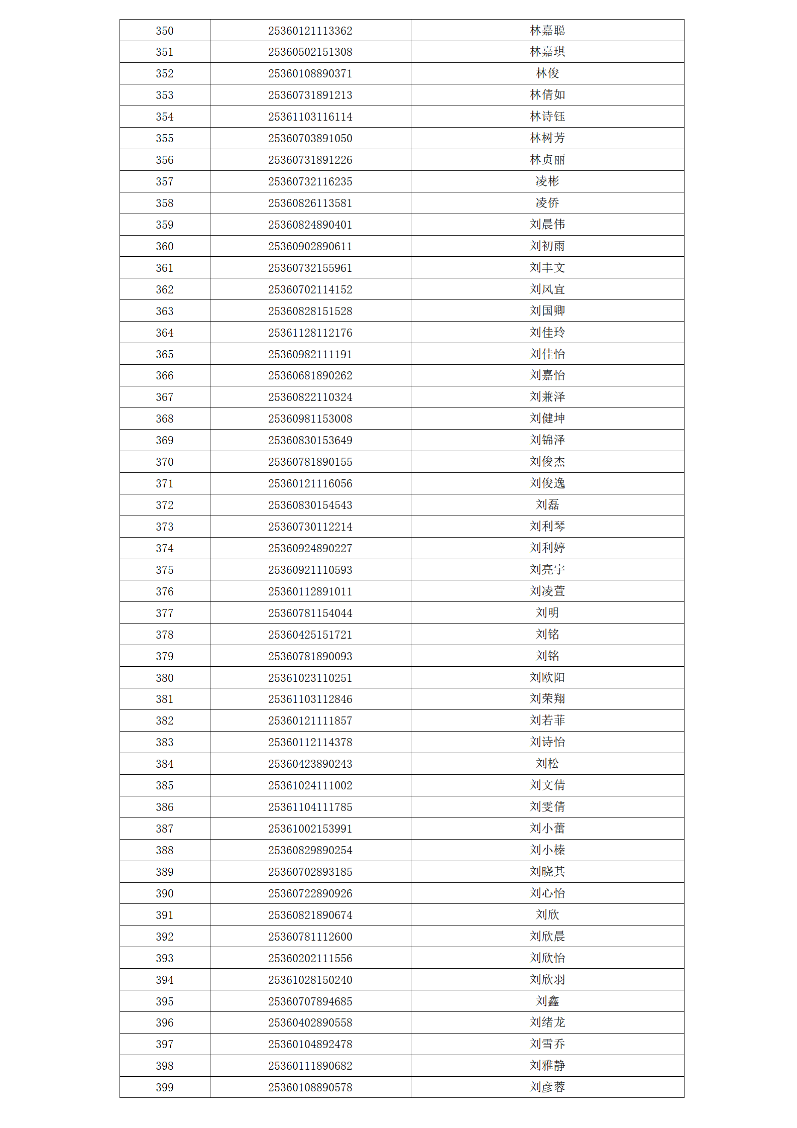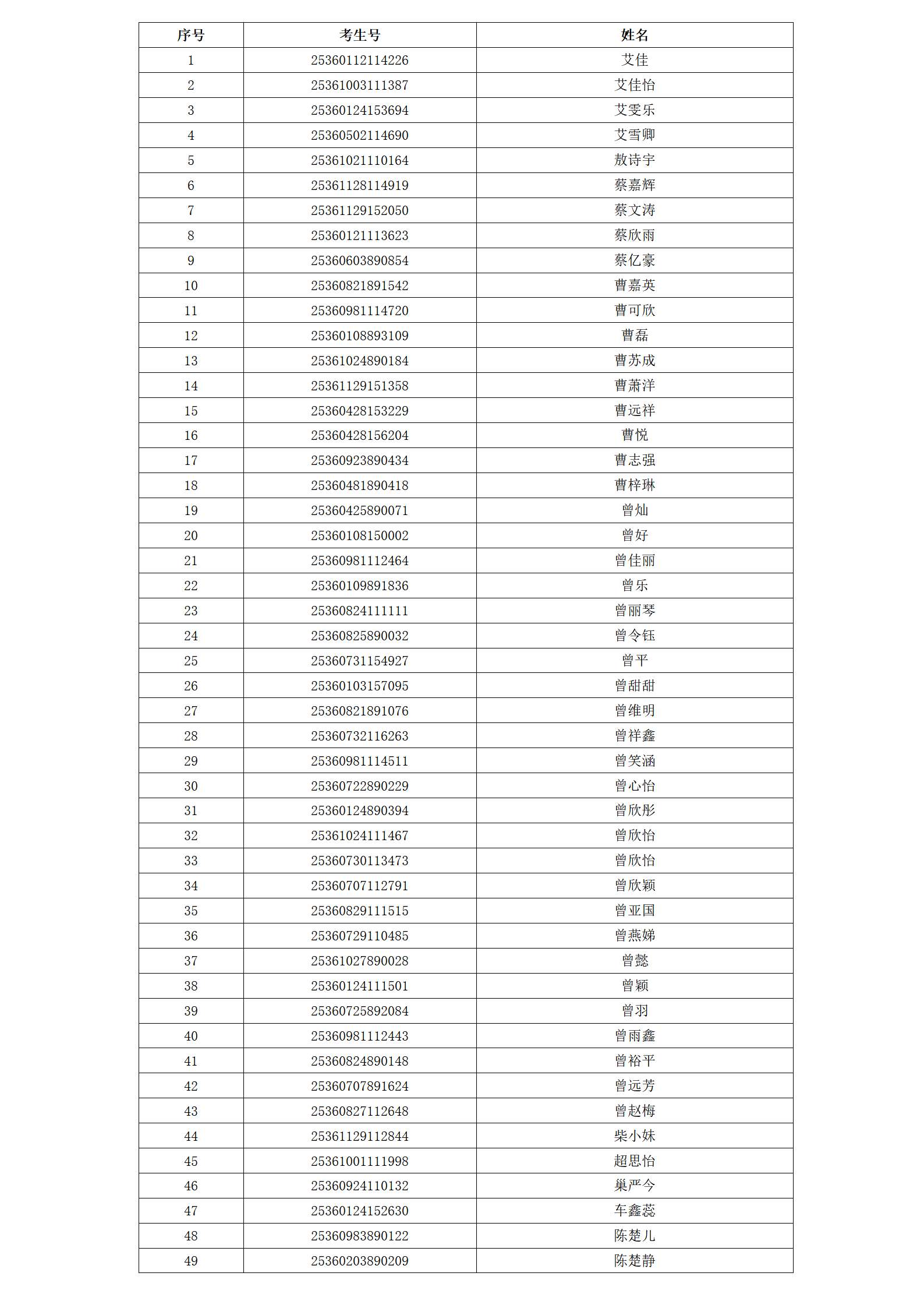 各位考生,江西传媒职业学院2025年单招录取已经结束,录取人数860人,录取通知书将于4月底统一寄出,现将录取名单公布。名单以姓名首字母(a-z)排序:
