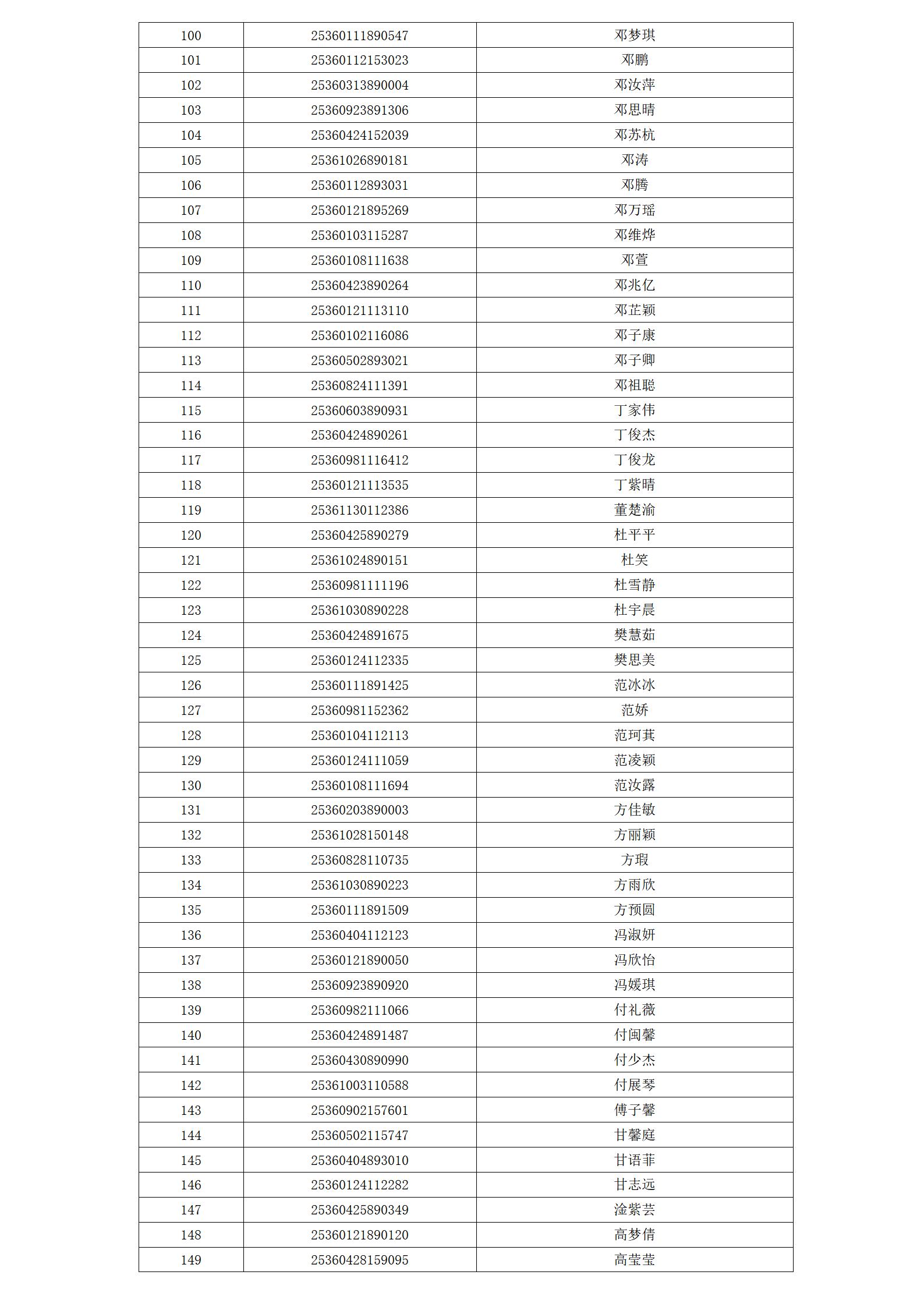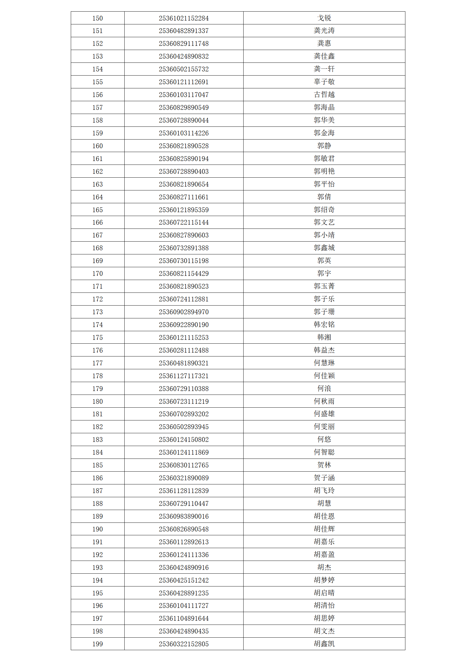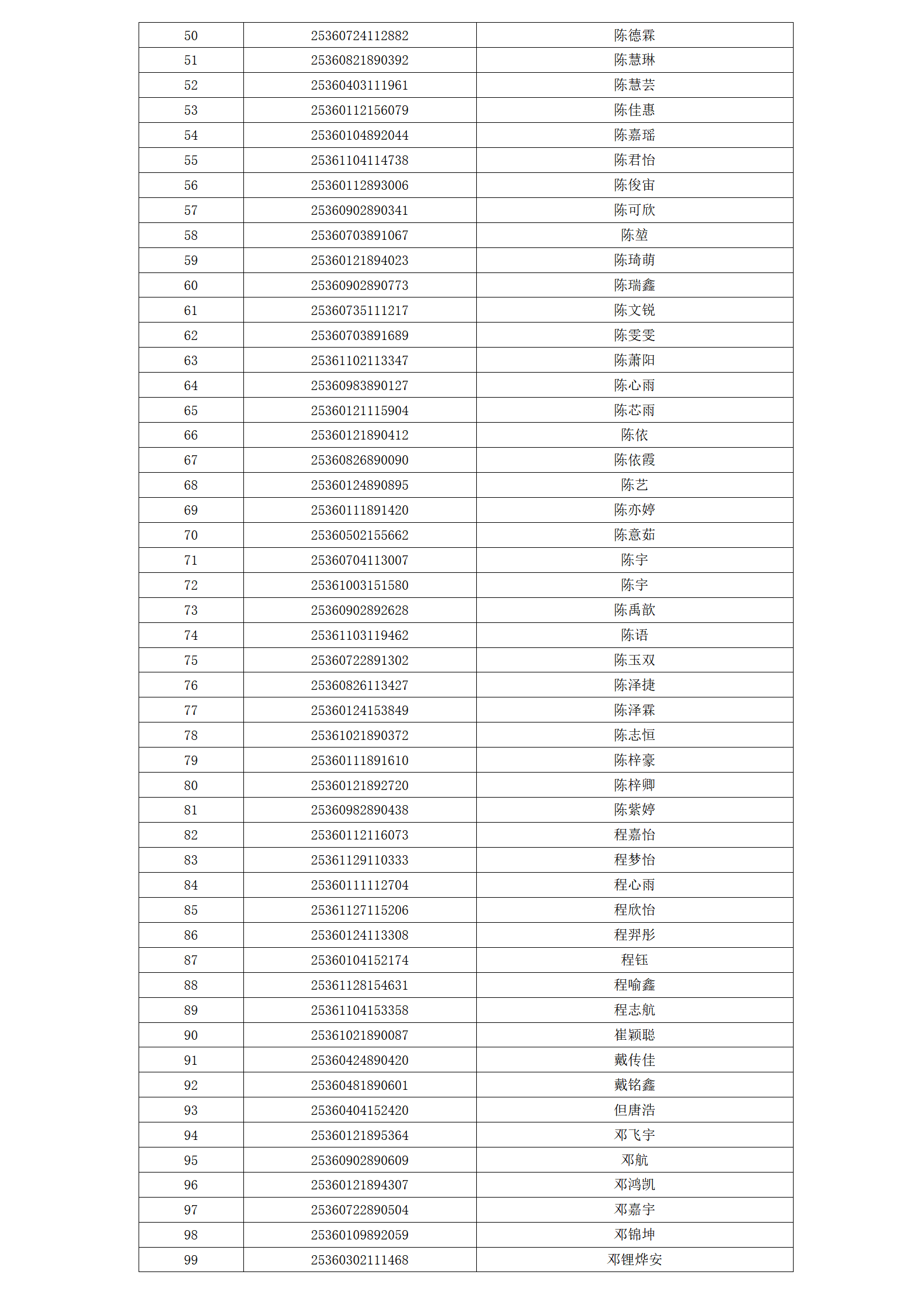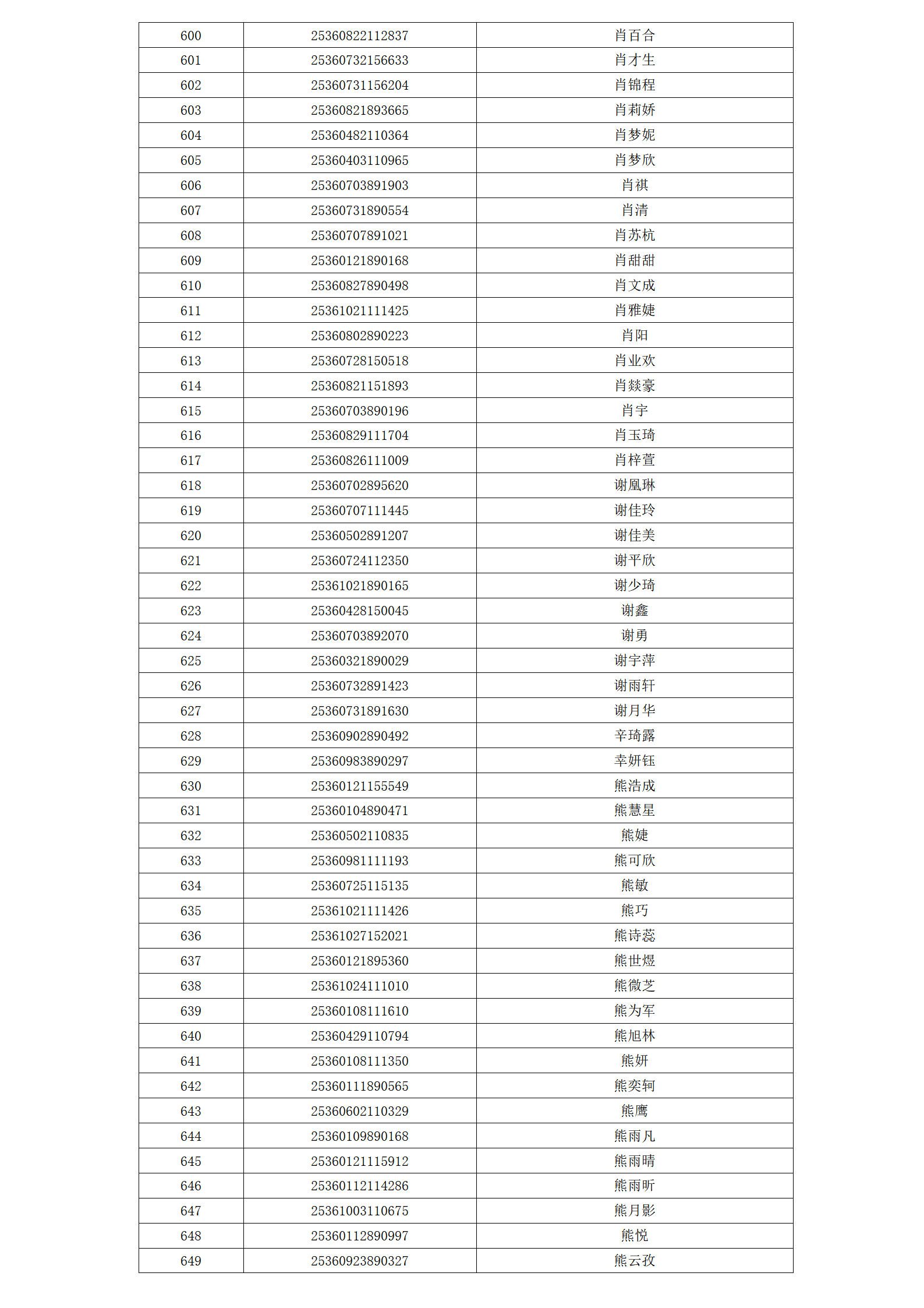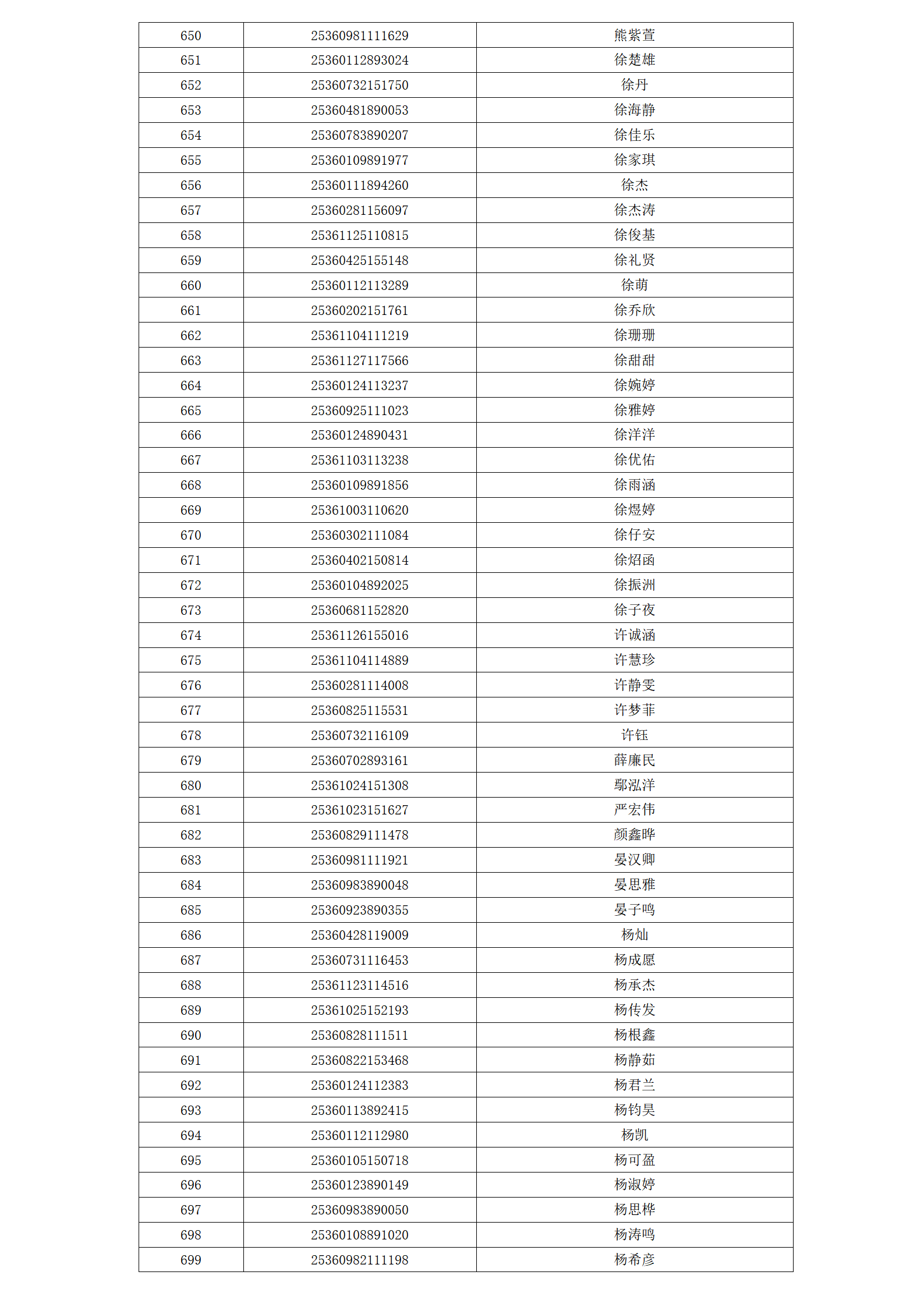 各位考生,江西传媒职业学院2025年单招录取已经结束,录取人数860人,录取通知书将于4月底统一寄出,现将录取名单公布。名单以姓名首字母(a-z)排序: