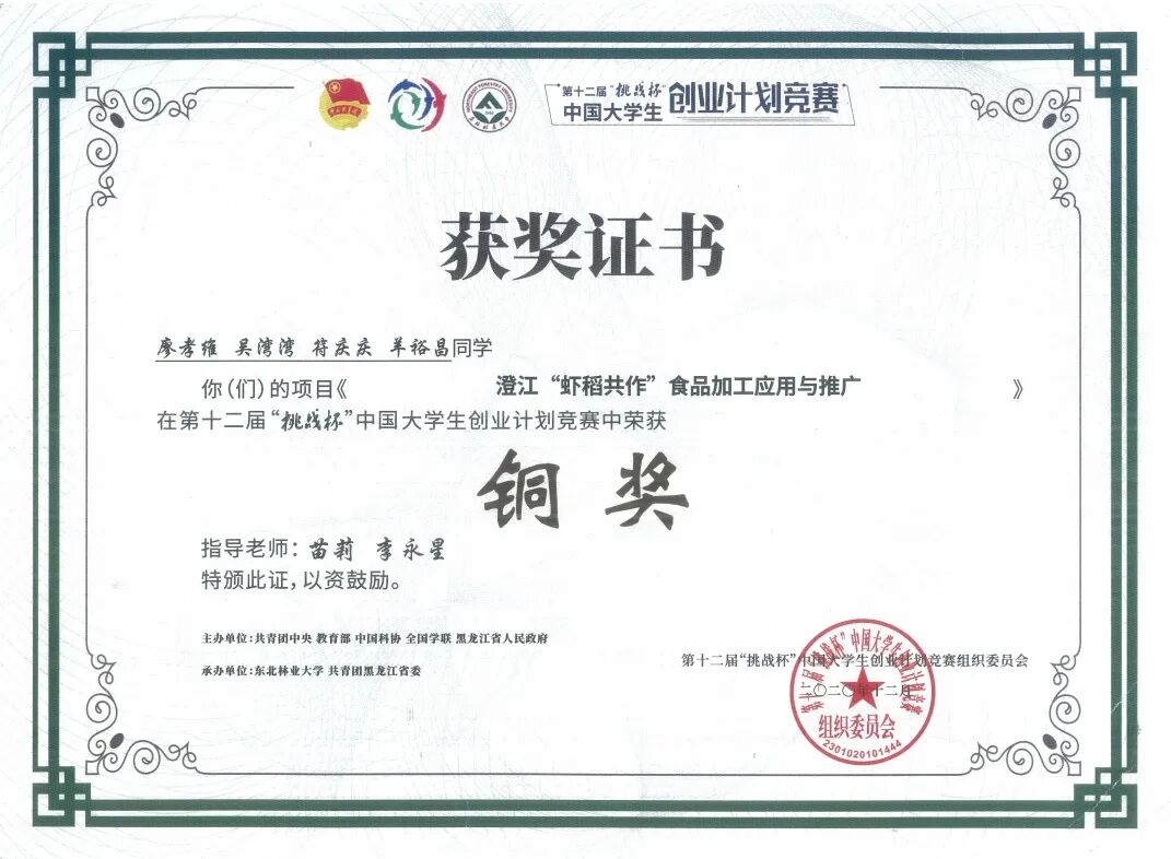 第12届挑战杯中国大学生创业计划大赛铜奖