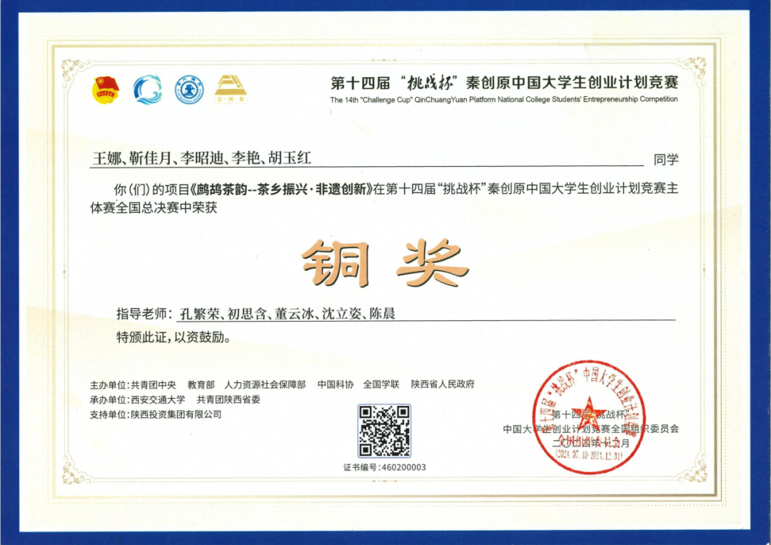 第十四届“挑战杯”秦创原中国大学生创业计划竞赛主体赛全国总决赛铜奖