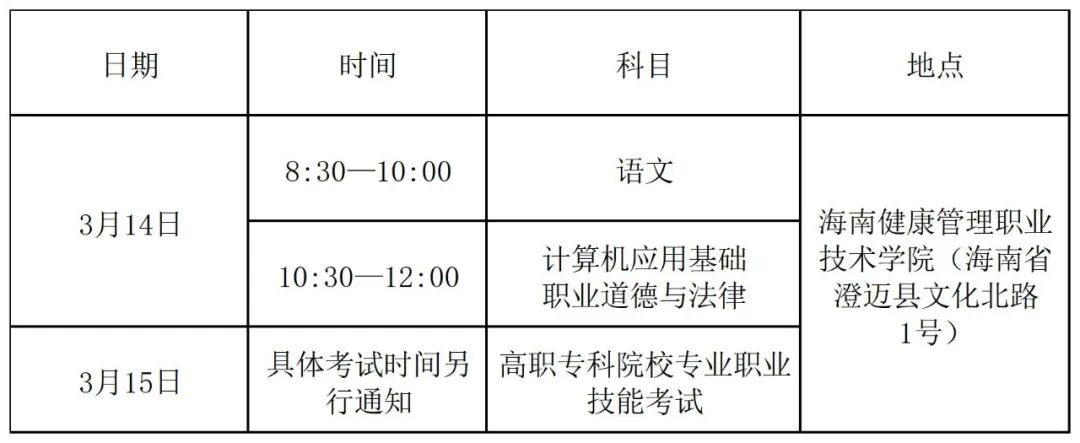 注意:报名时间、报名方式、考试方式和时间等以海南省考试局通知文件为准。