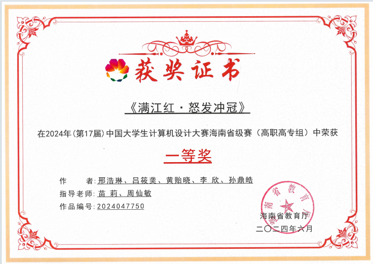 2024年第17届中国大学生计算机设计大赛海南省决赛一等奖