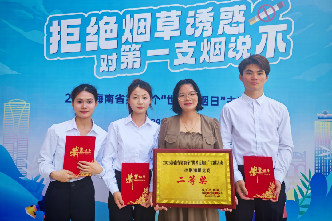 2025年5月29日,学院代表队斩获海南省第38个“世界无烟日”知识竞赛亚军。