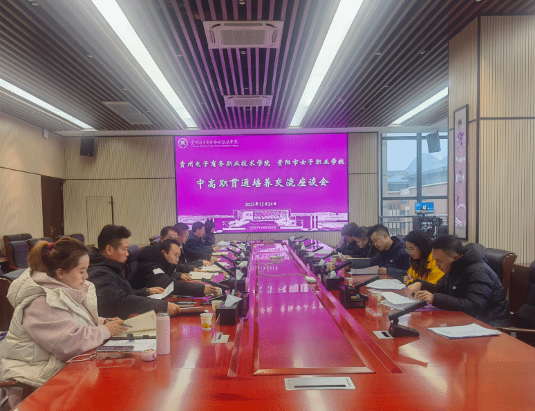 2025年12月24日上午,贵州电子商务职业技术学院与贵阳市女子职业学校在学院弘商楼523会议室召开中高职贯通培养交流座谈会。会议由学院副院长蒋永彪主持,两校相关领导、系部负责人及专业教师共20余人参加会议。