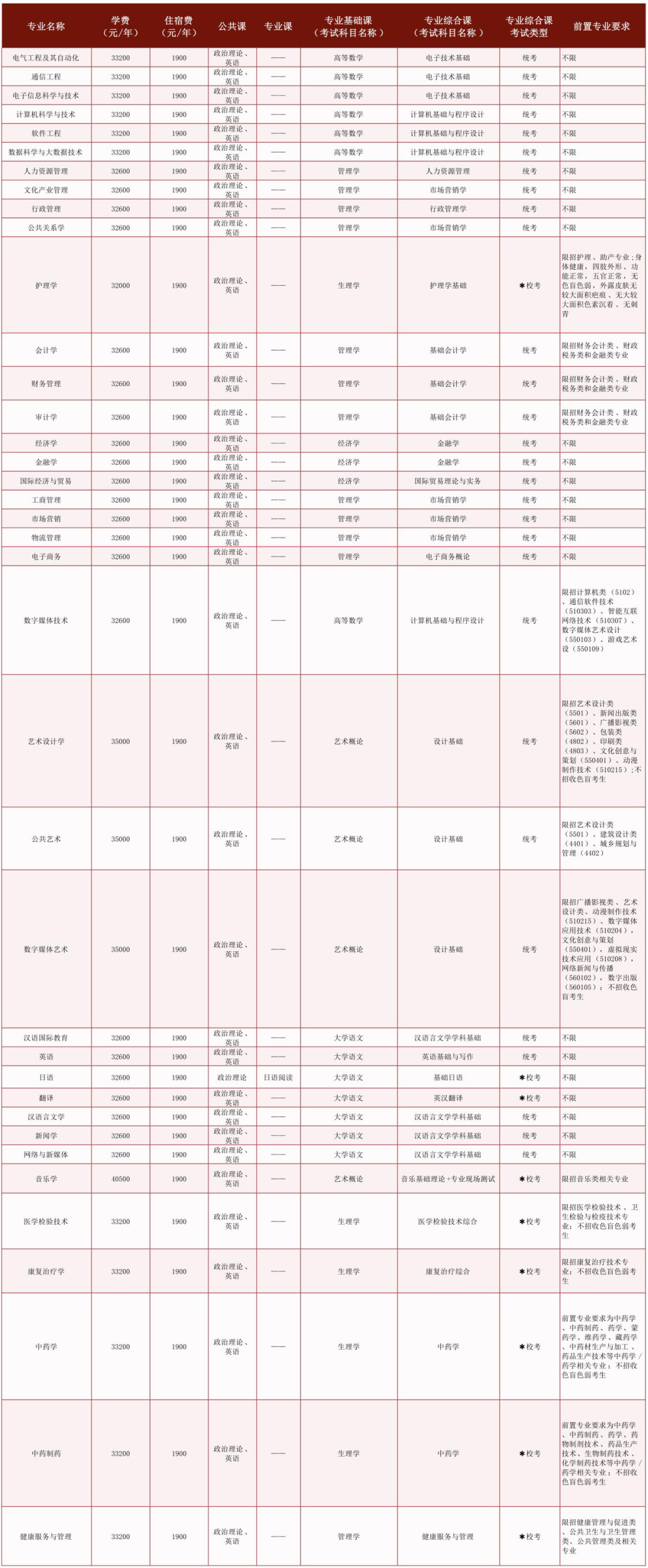 2.我校自行组织命题的专业综合课的专业不参加征集志愿录取。