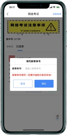 五、完成考试后填写考卷邮寄单号