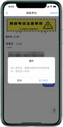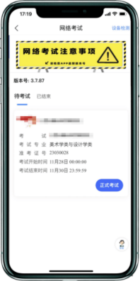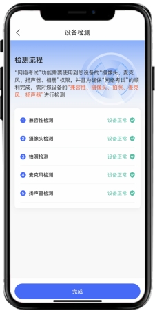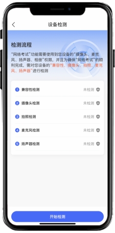 首次使用“网络考试”的考生需进行手机设备检测,若机型检测未通过,考生需及时更换设备。
