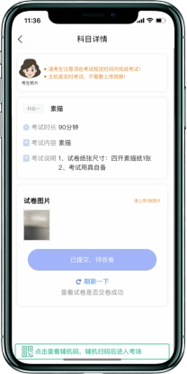 此时,本场考试“艺术升”APP操作步骤全部完成!