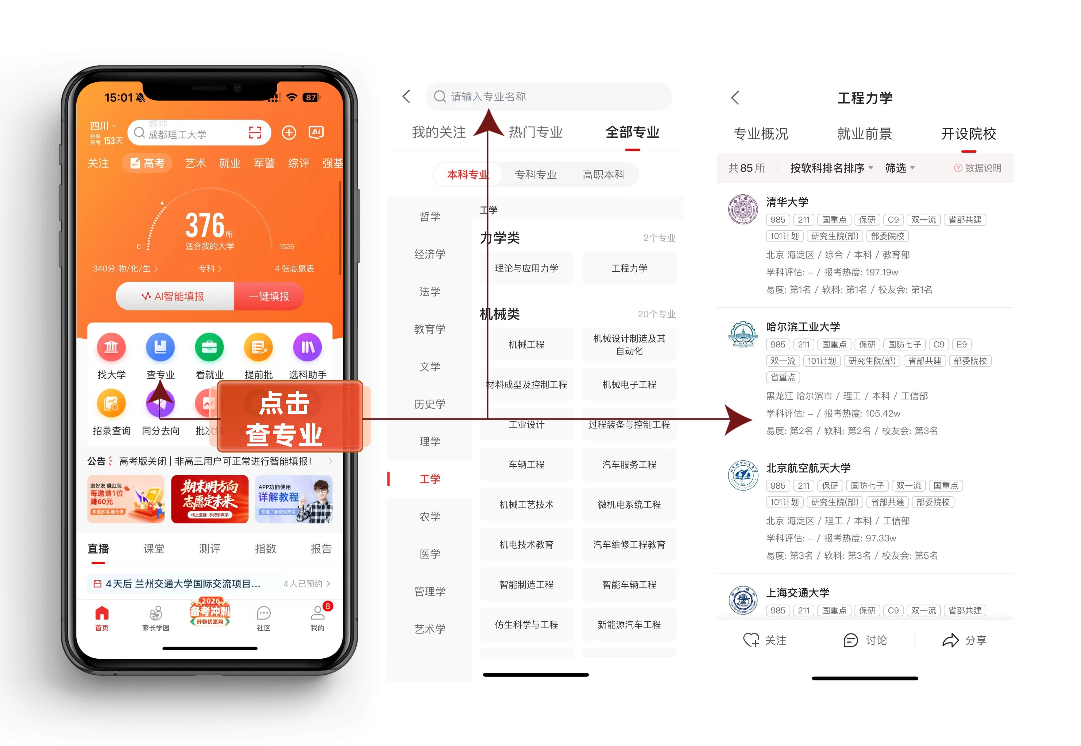 目前,全国有多所本科高校开设工程力学专业,考生可通过优志愿“查专业”功能,搜索“工程力学”专业,查询相关开设院校。
