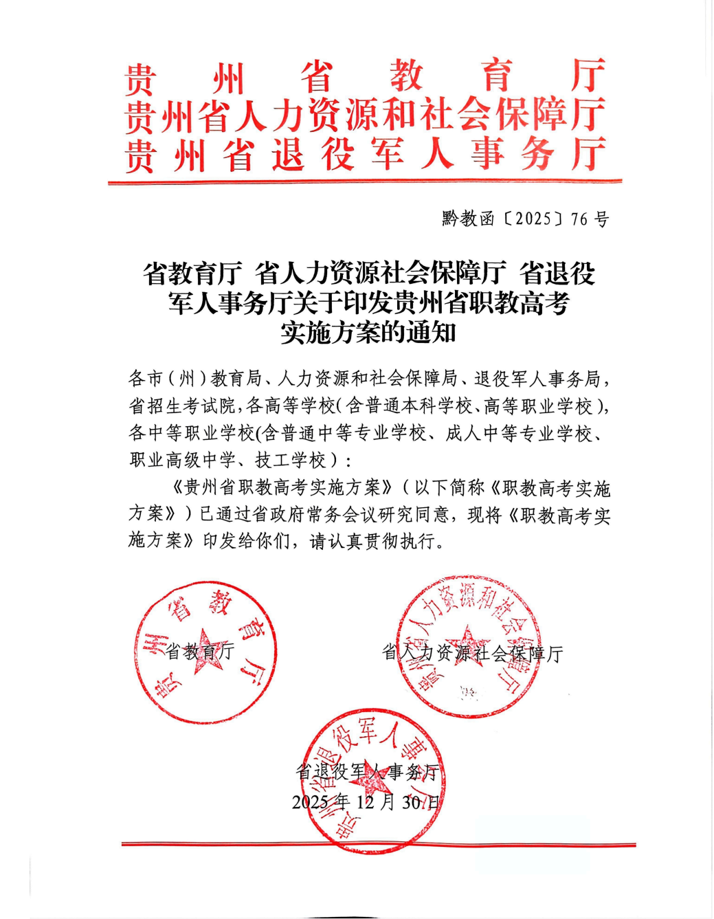 《贵州省职教高考实施方案》印发