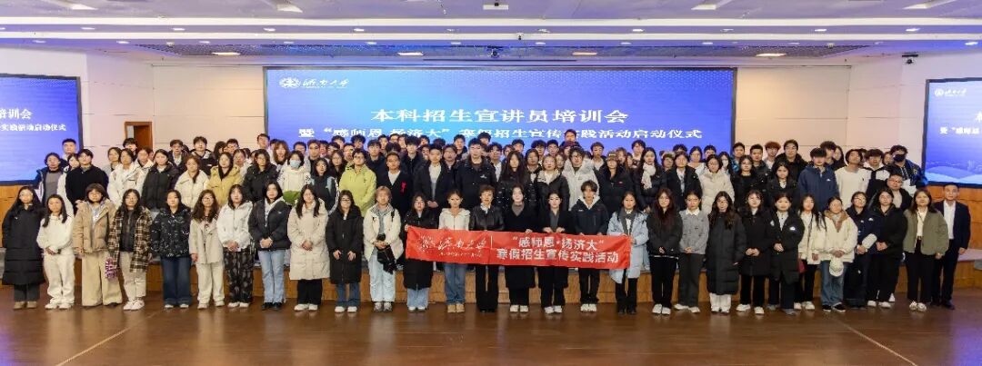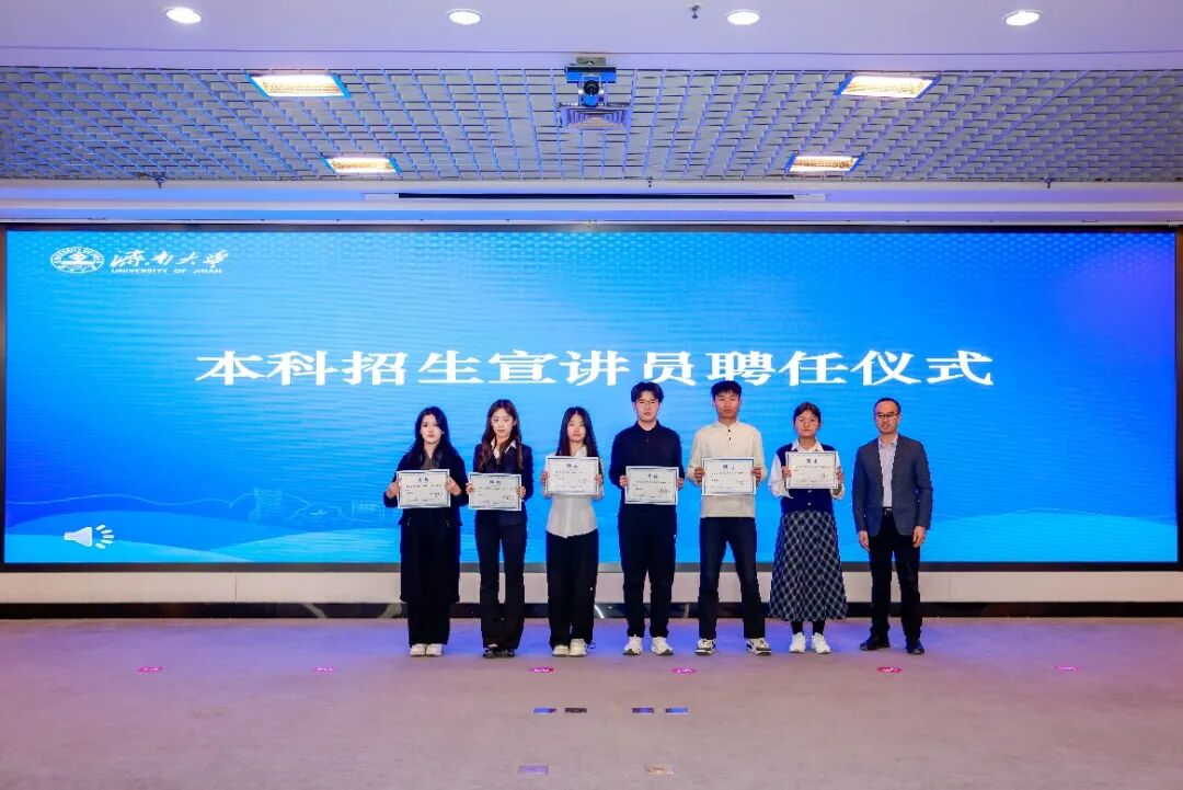 近日,济南大学“2025-2026学年本科招生宣讲员培训会暨‘感师恩 扬济大’寒假招生宣传实践活动”在第一学术报告厅正式启动。教务处、校团委、相关学院负责人及学生宣讲员、招生办公室融媒体团队成员参加启动仪式。
