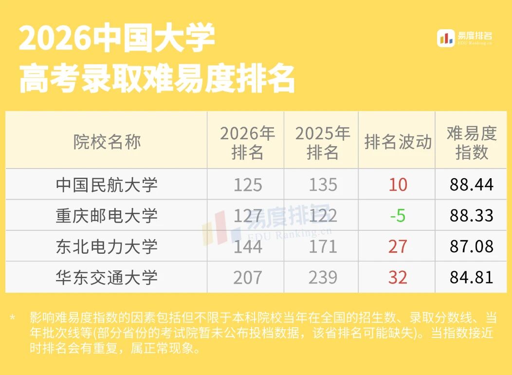 学校排名小幅下降5名,可能由于专业报考限制较多,飞行技术、交通运输(空管方向)等核心专业对视力、身高、身体条件有严格要求,这在一定程度上缩小了报考群体。