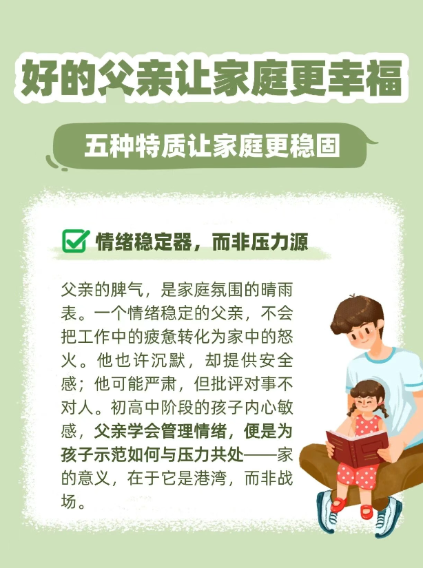 父亲的角色,从不在于完美。它的力量,在于持续的在场、用心的看见与真诚的成长。当一个父亲学会先经营好自己,再滋养关系,他便已经为家庭的幸福打下了最坚实的基石——那是一种无需言说的底气,让孩子敢于远行,也让家始终温暖如初。