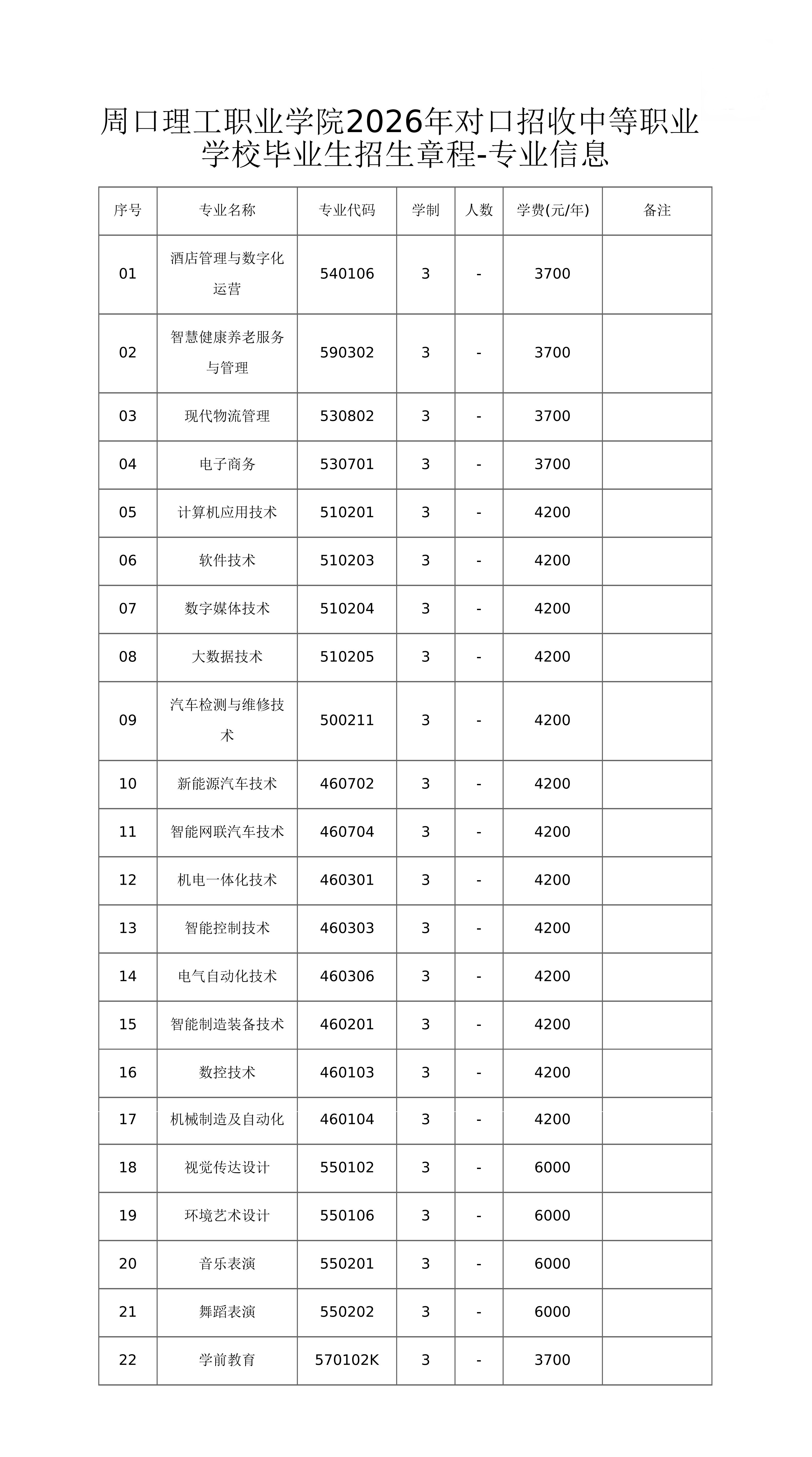 第一条本章程适用于周口理工职业学院对口招收中等职业学校毕业生招生。