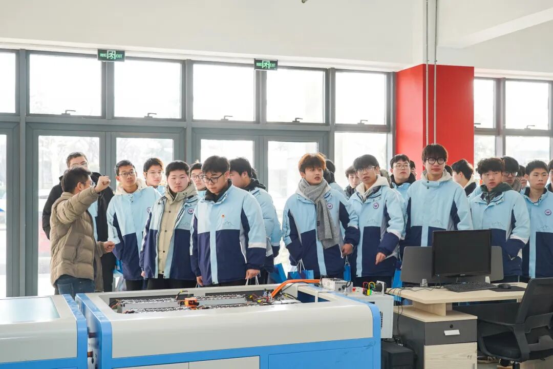 随后,师生们依次参观了新能源汽车实训基地及宁德时代产教融合人才培养基地。现场陈列的动力电池Pack拆装实训平台、电驱系统综合调试工位等标准化教学设施布局井然。各教学环节均深度遵循学校与宁德时代新能源科技股份有限公司共同制定的技术标准与规范。专业教师围绕高压电操作安全规程进行了系统讲解,并指导学生完成电池模组检测实践,使来访师生直观感受到职业本科教育中标准化、规范化的企业级作业流程与管理体系。