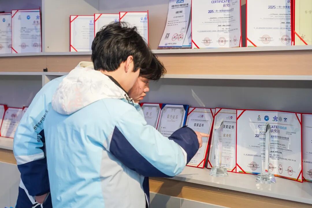 校企合作成果展厅里,一张张合作协议、一本本专利证书、一个个实践案例,全面呈现了学校与保时捷、比亚迪、宁德时代、华为、百度等行业龙头企业共建产业学院、订单班及联合实验室的丰硕成果,清晰勾勒出学校“教育链、人才链、产业链”三链融合的特色育人生态。