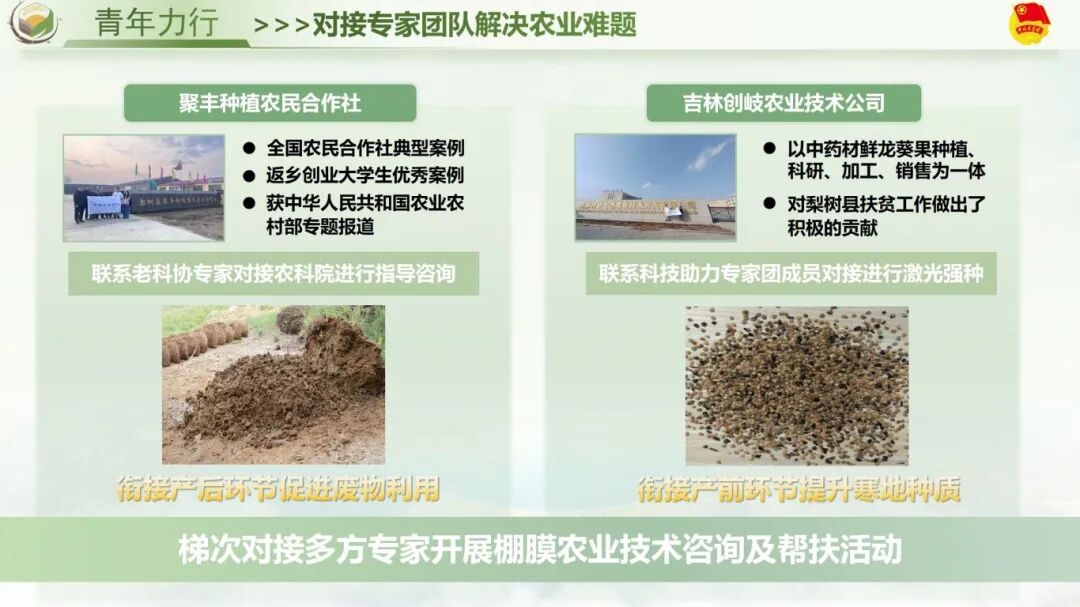 项目创新:本项目的突出创新在于构建了“双轮驱动”协同治理体系。该体系以精准刻画的本土“土专家”画像为内核,激活其“技术翻译官”与“资源协调员”的内生动力;同时,系统整合政府、科研、企业等外部力量形成赋能支撑。通过“内驱”与“赋能”双轮协同,有效破解了技术推广“最后一公里”难题,形成了推动寒地棚膜经济高质量发展的核心引擎。