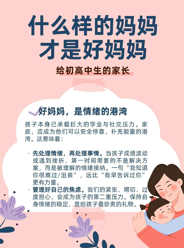 当我们成为母亲,“好妈妈”三个字就像一把无形的尺子,时时在心中衡量自己。尤其孩子步入初高中,学业压力、亲子关系、青春期碰撞……我们常感焦虑:我做得够好吗?
