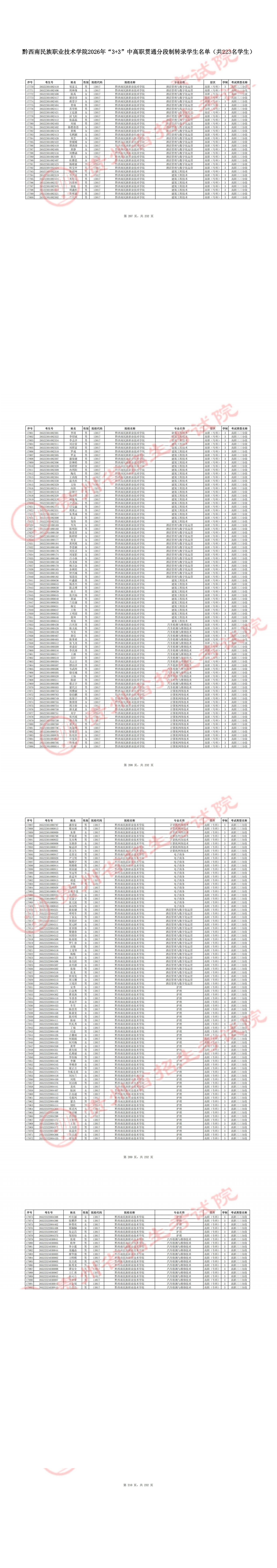 黔西南民族职业技术学院2026年“3+3”中高职贯通分段制转录学生名单公示