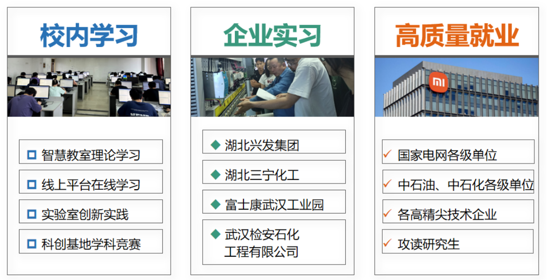 武汉工程大学邮电与信息工程学院机械与电气工程学院在校内建有罗克韦尔自动化实验室、飞思卡尔·ARM联合创新实验室、石化设备先进技术联合实验室等多个专业化实践平台,并与行业领军企业共建“流程工业装备与控制现场工程师班”“基地班”“卓越工程师班”等特色项目,打造“校内学习—企业实习—高质量就业”的进阶式培养链路,实现“课堂学技术、企业练真功、毕业即胜任”的无缝对接。